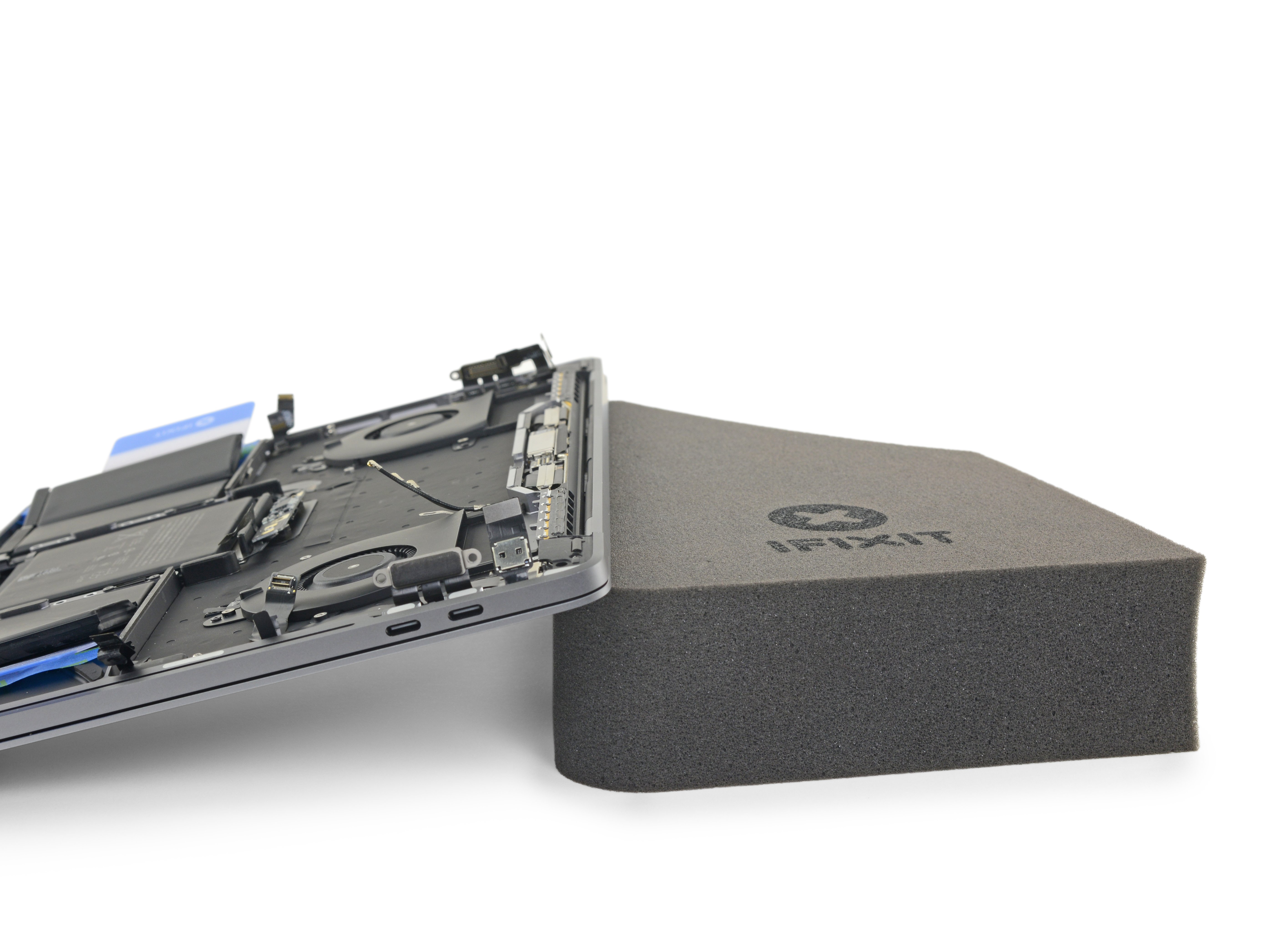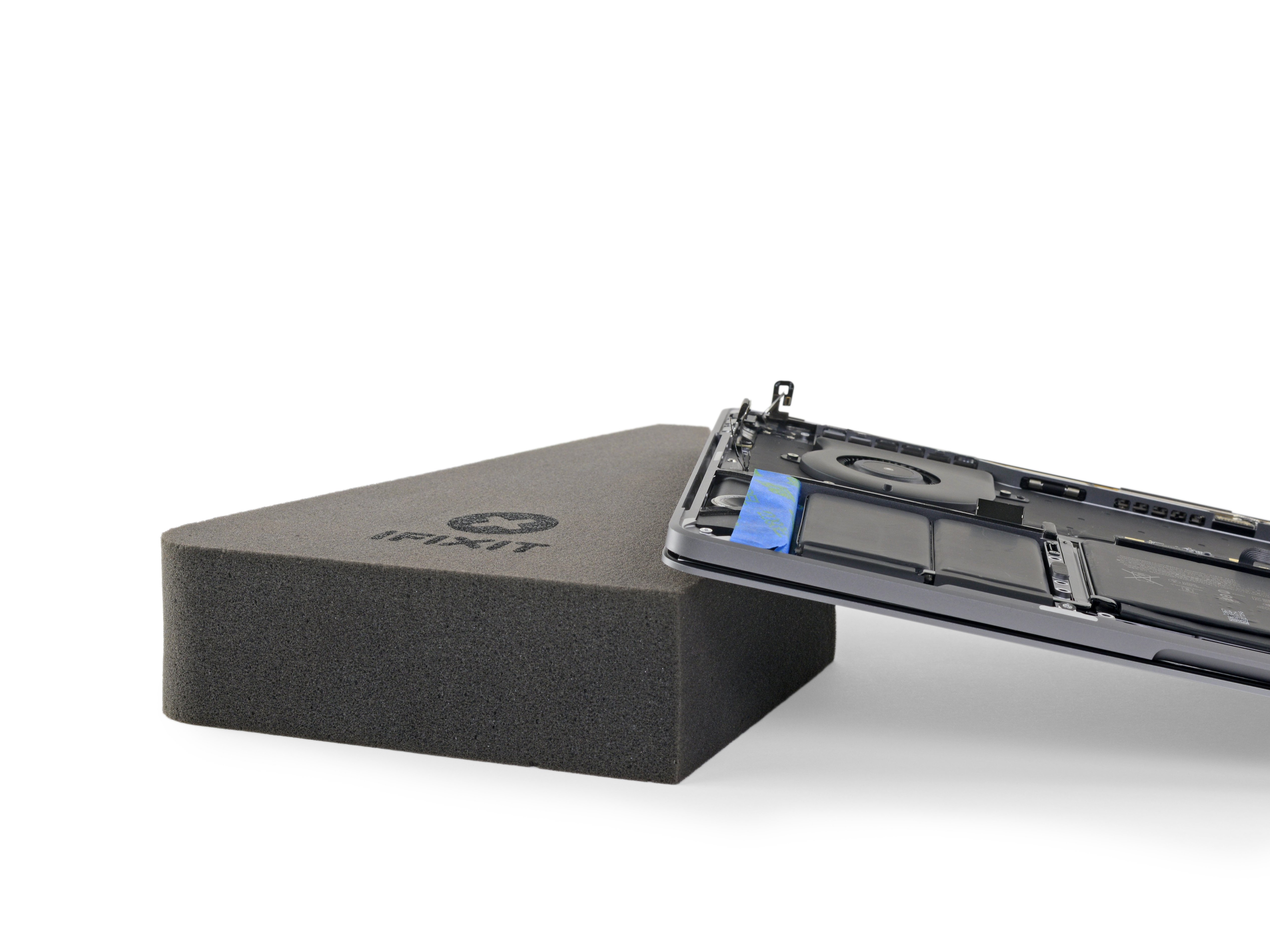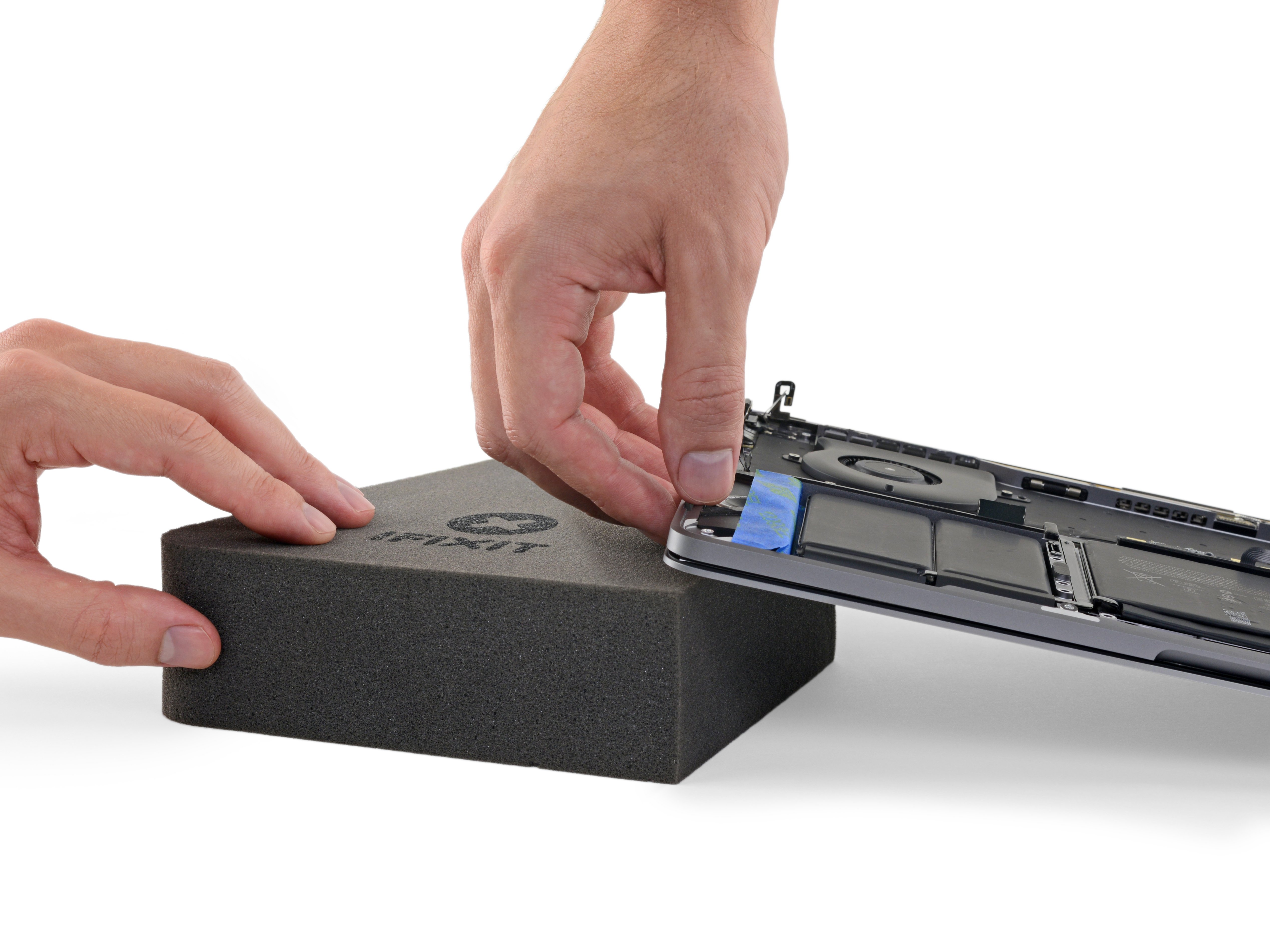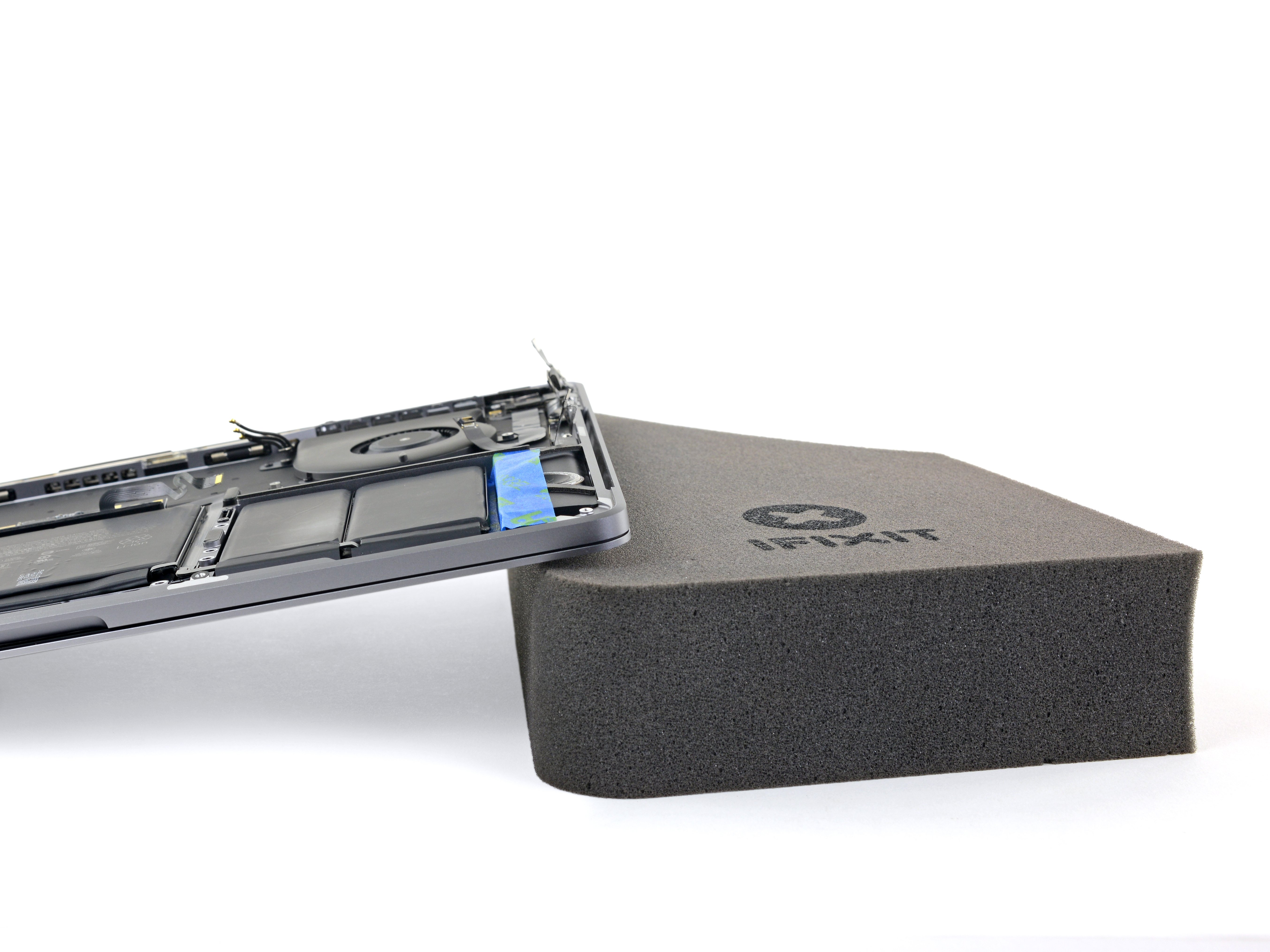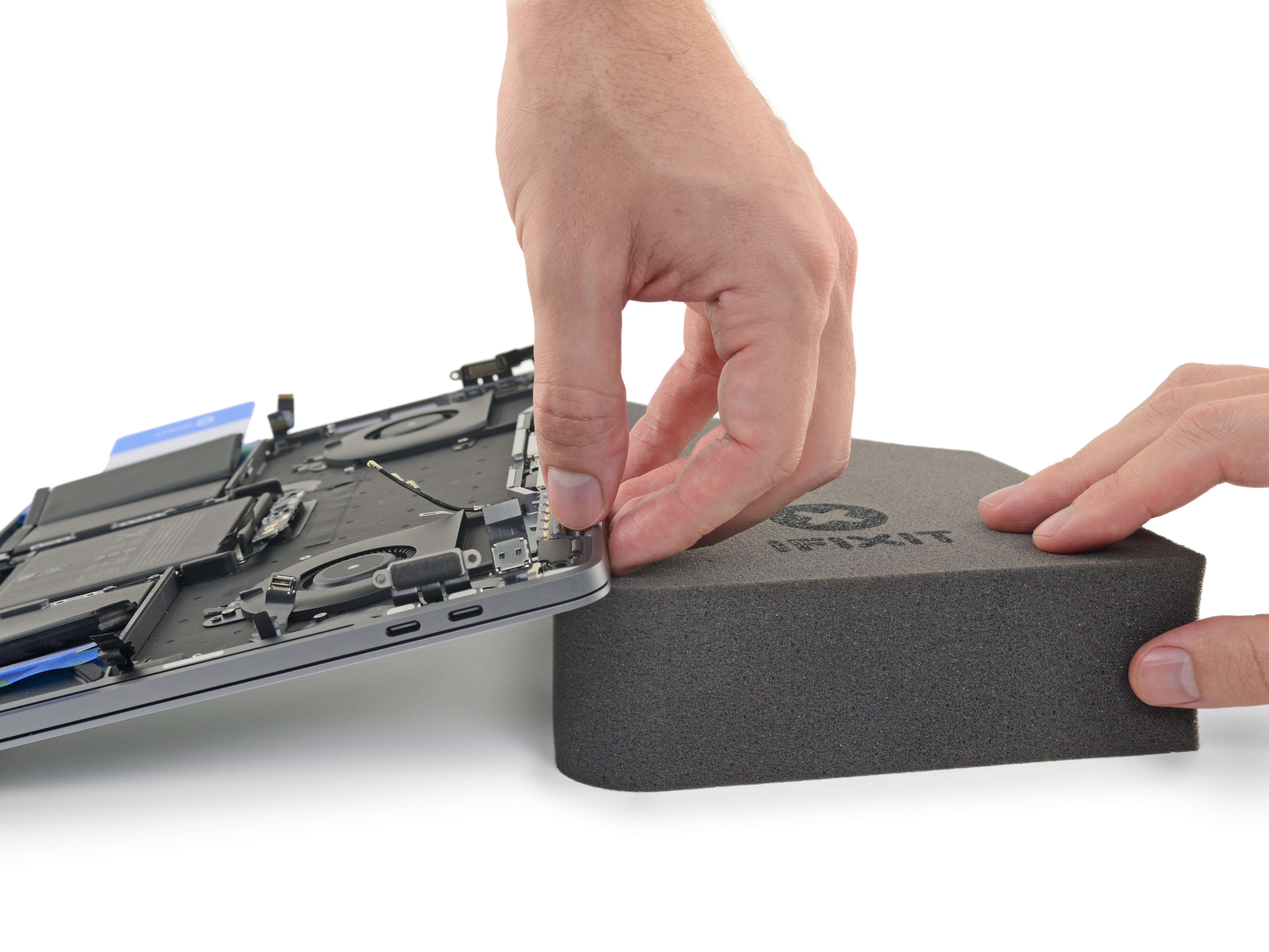 - To control the flow of adhesive remover and direct it away from the speaker, raise the right edge of your MacBook Pro a few inches using a book or foam block.