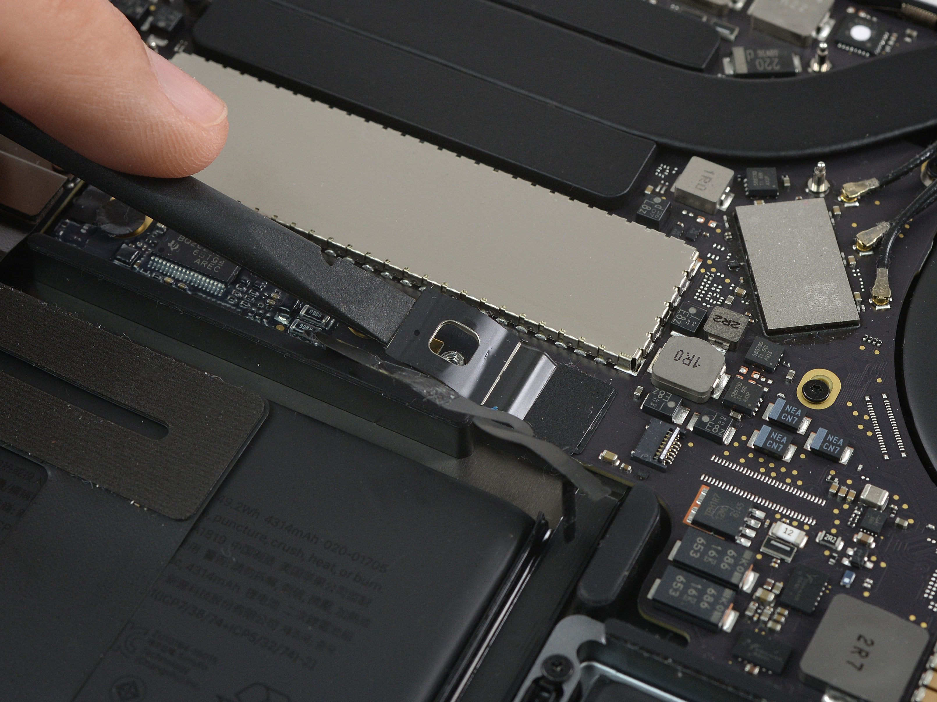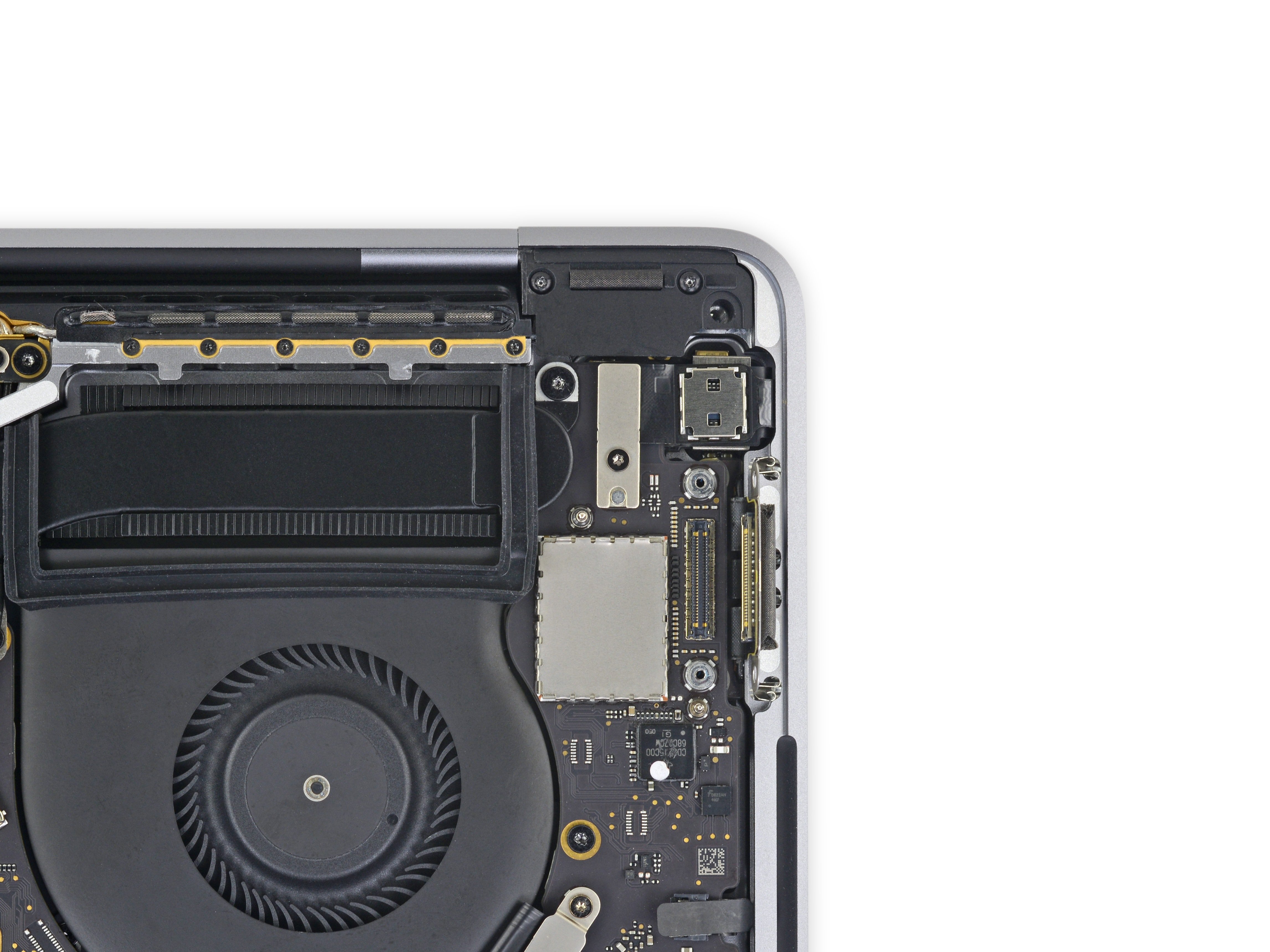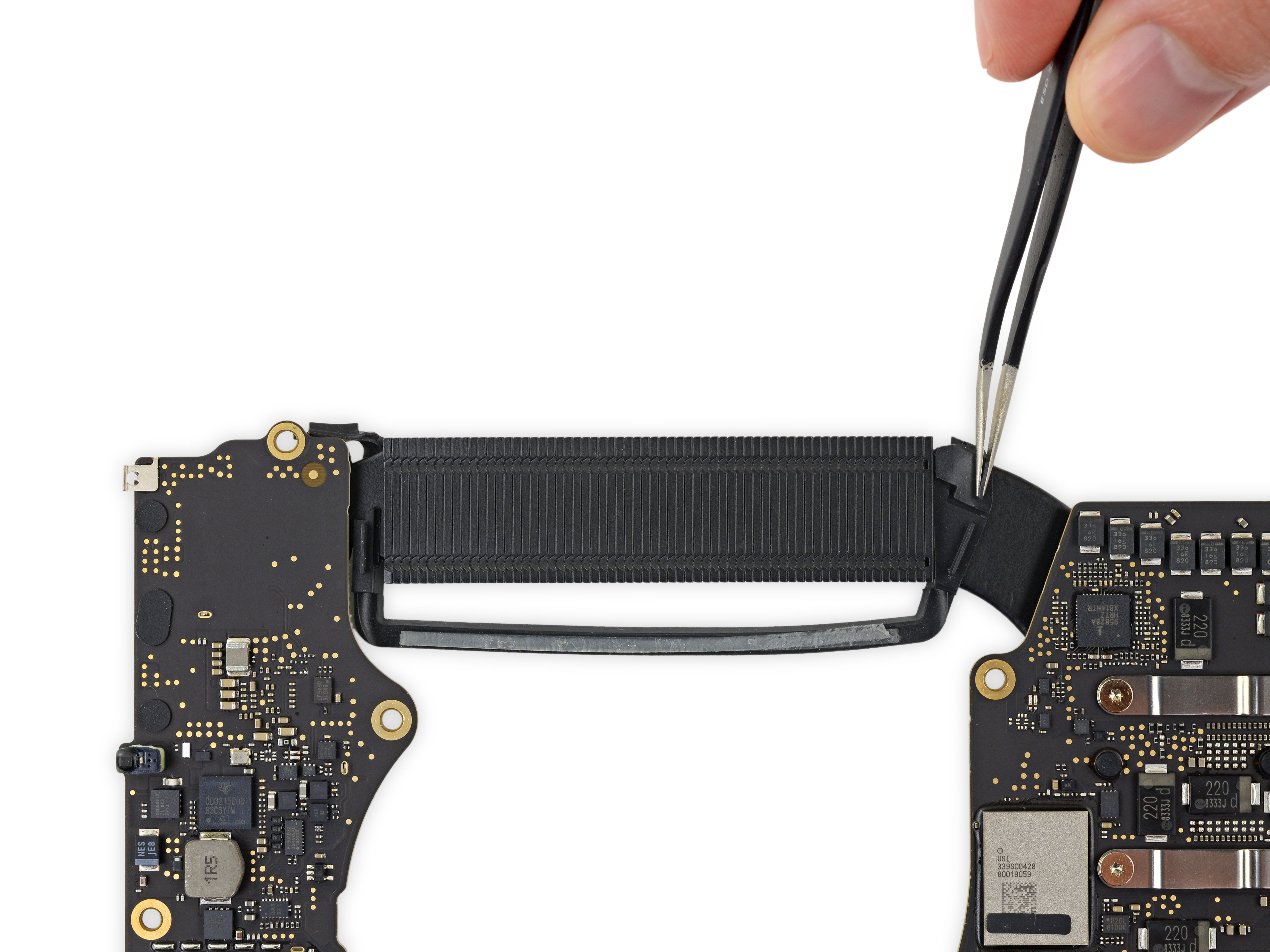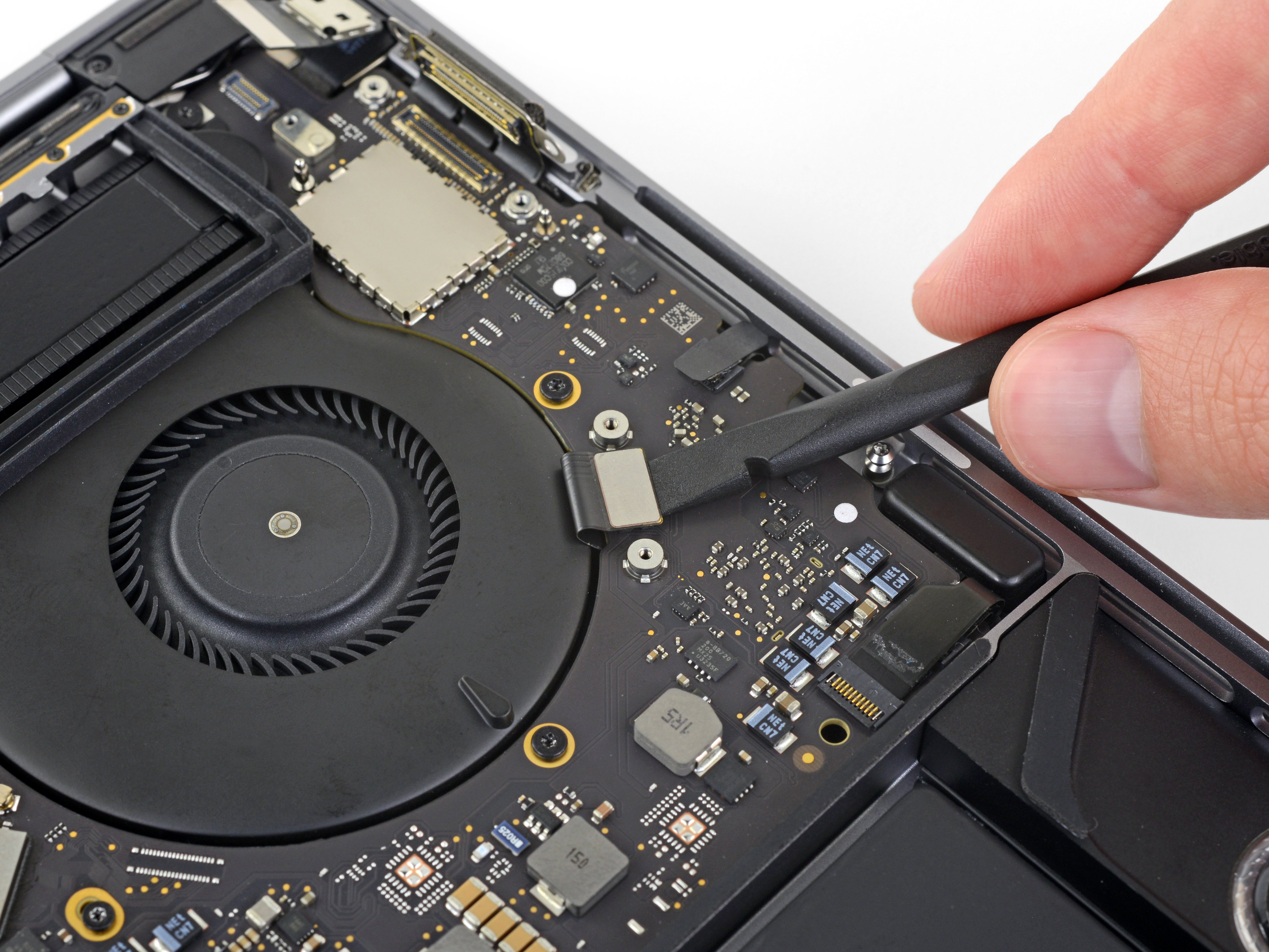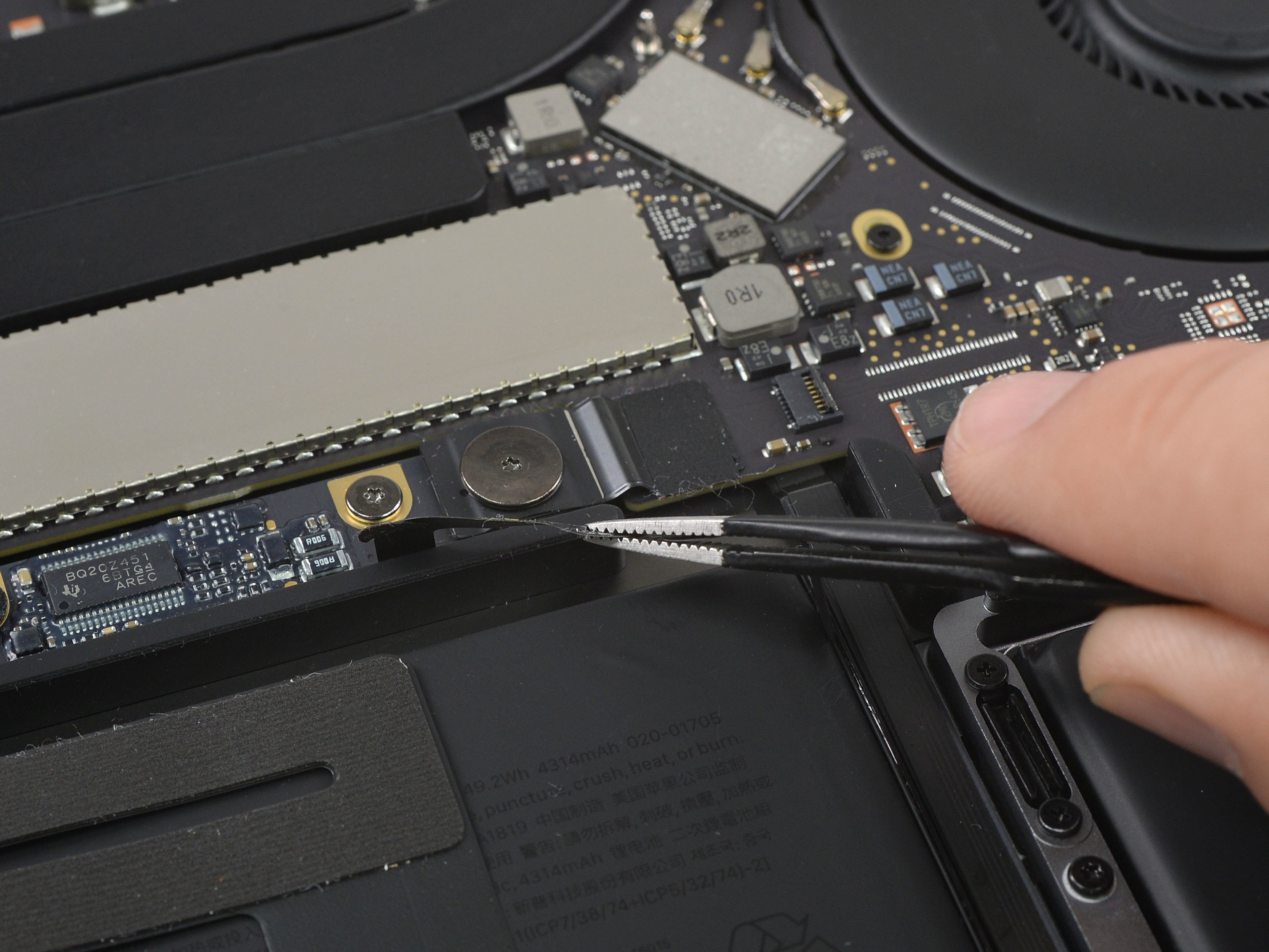 - Use a spudger to disconnect the left-side Thunderbolt port connector by prying it straight up from the logic board.