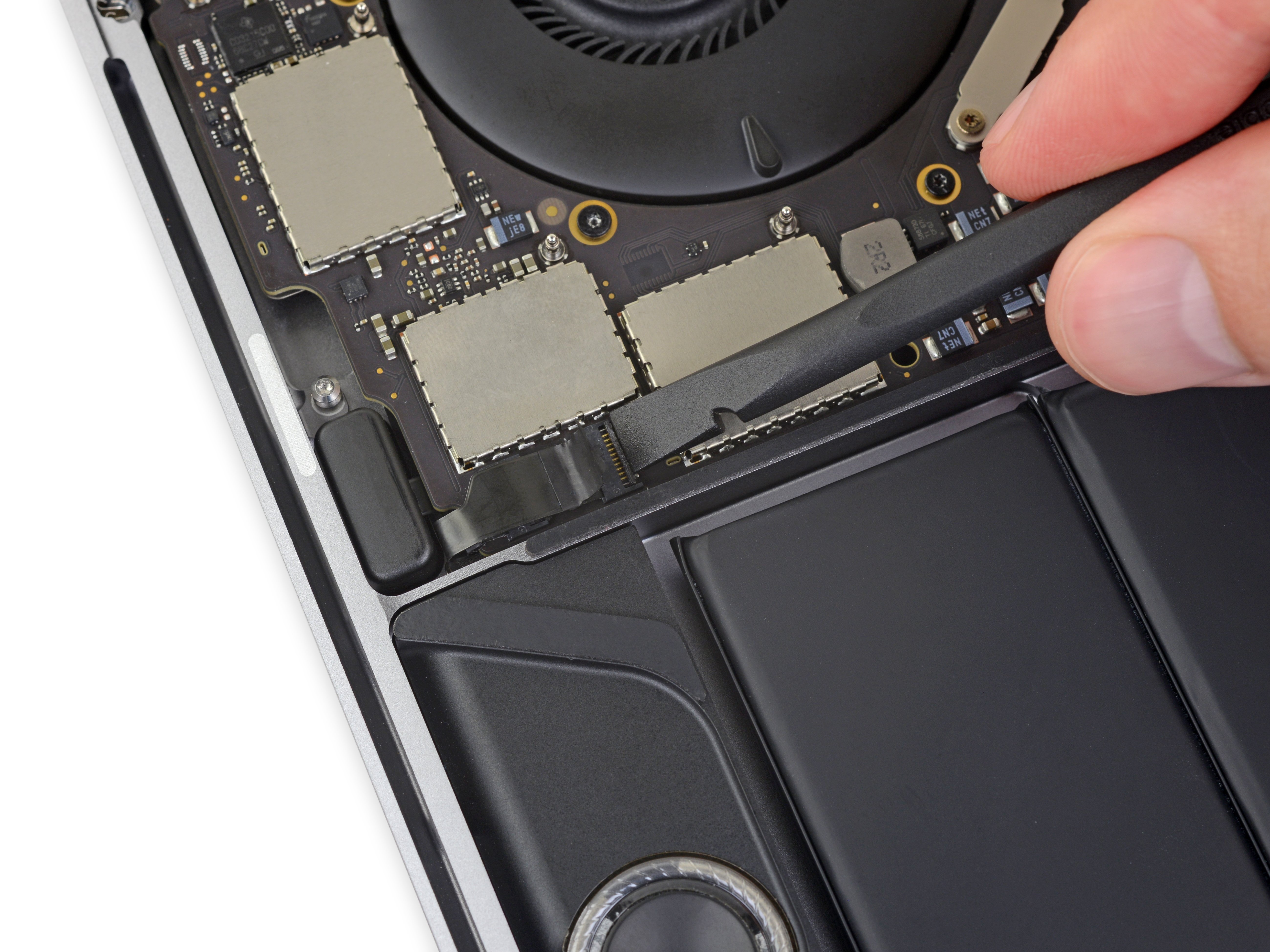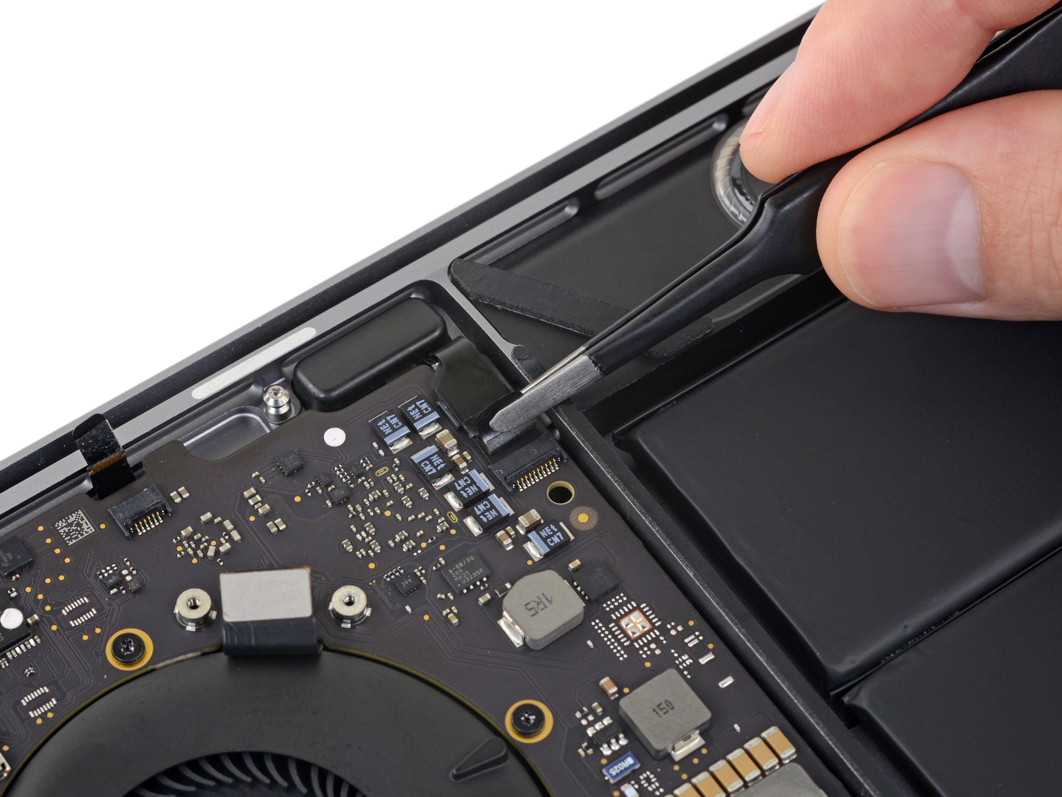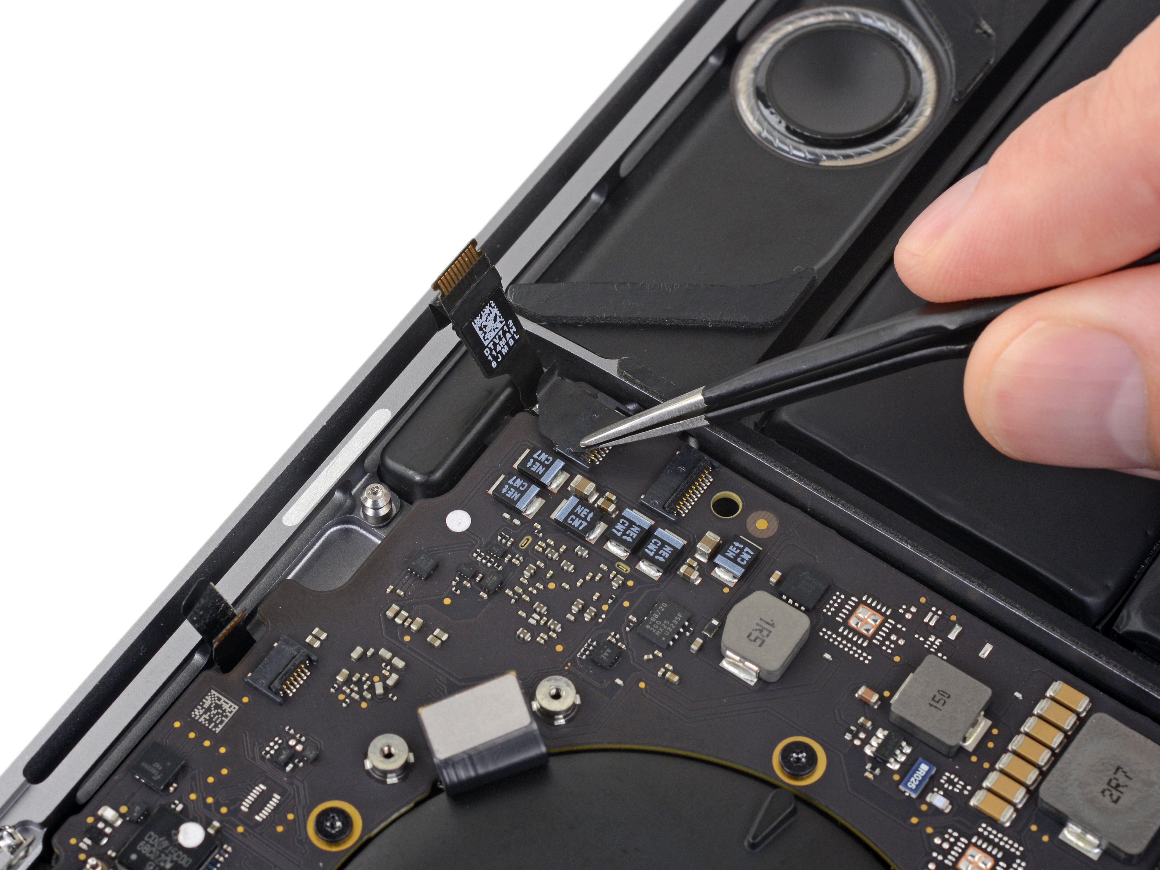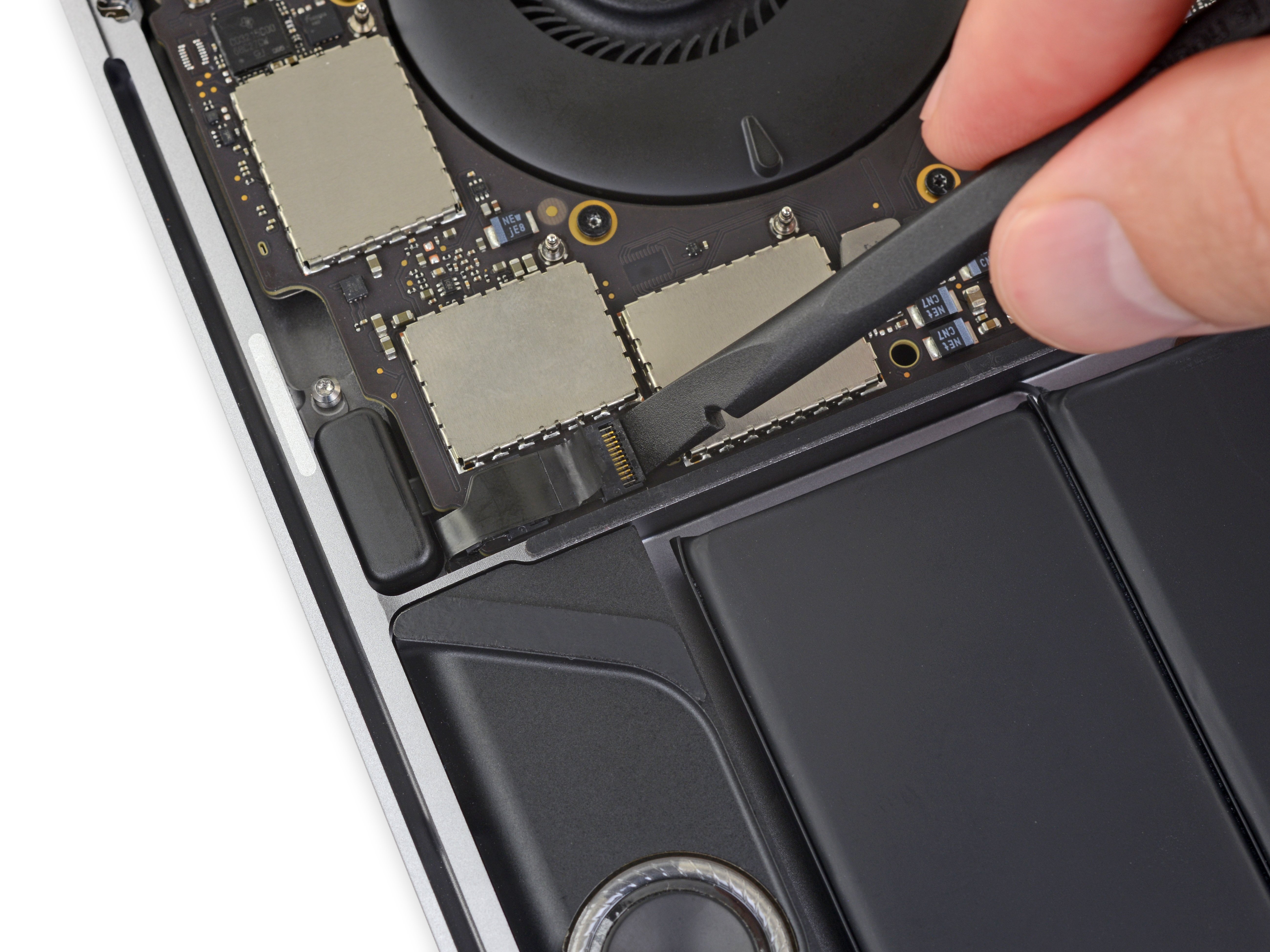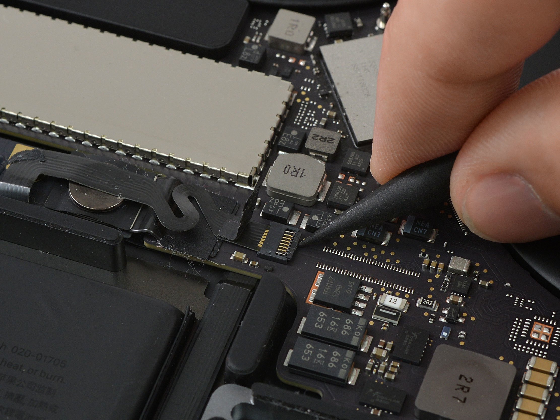 - Lift the connector high enough so that it stays separated from its socket. If it accidentally makes contact during the course of your repair, it could damage your MacBook Pro.
