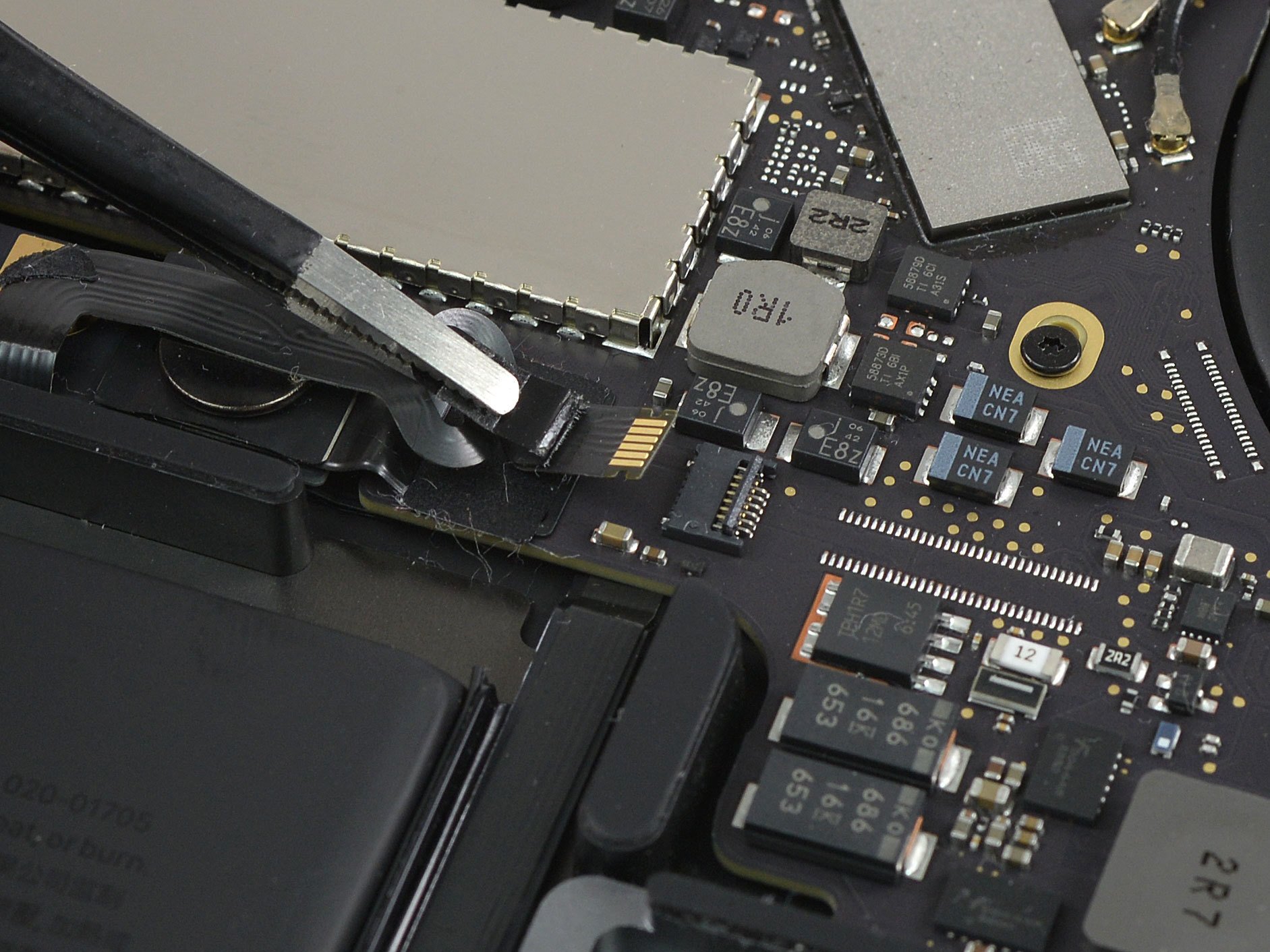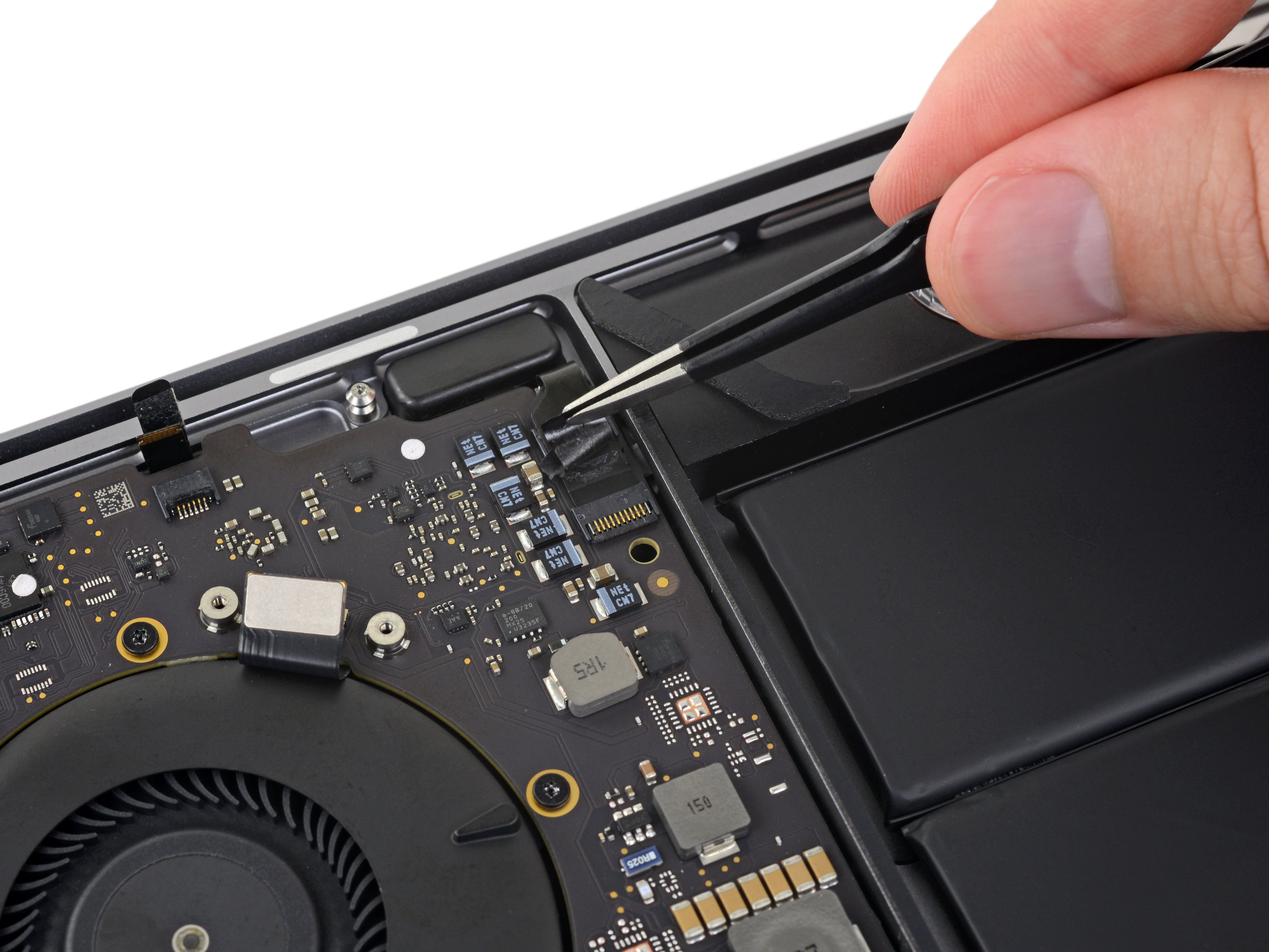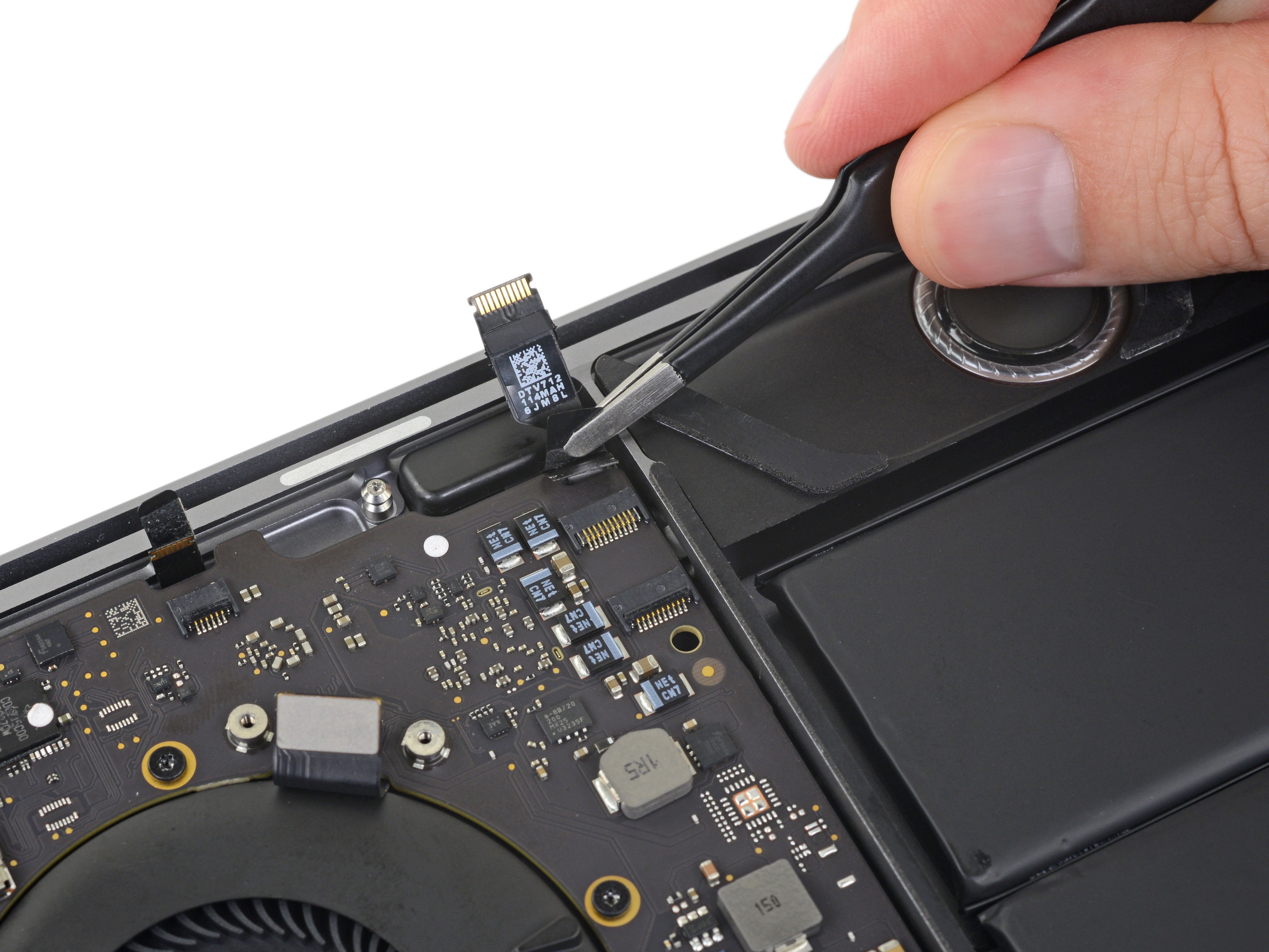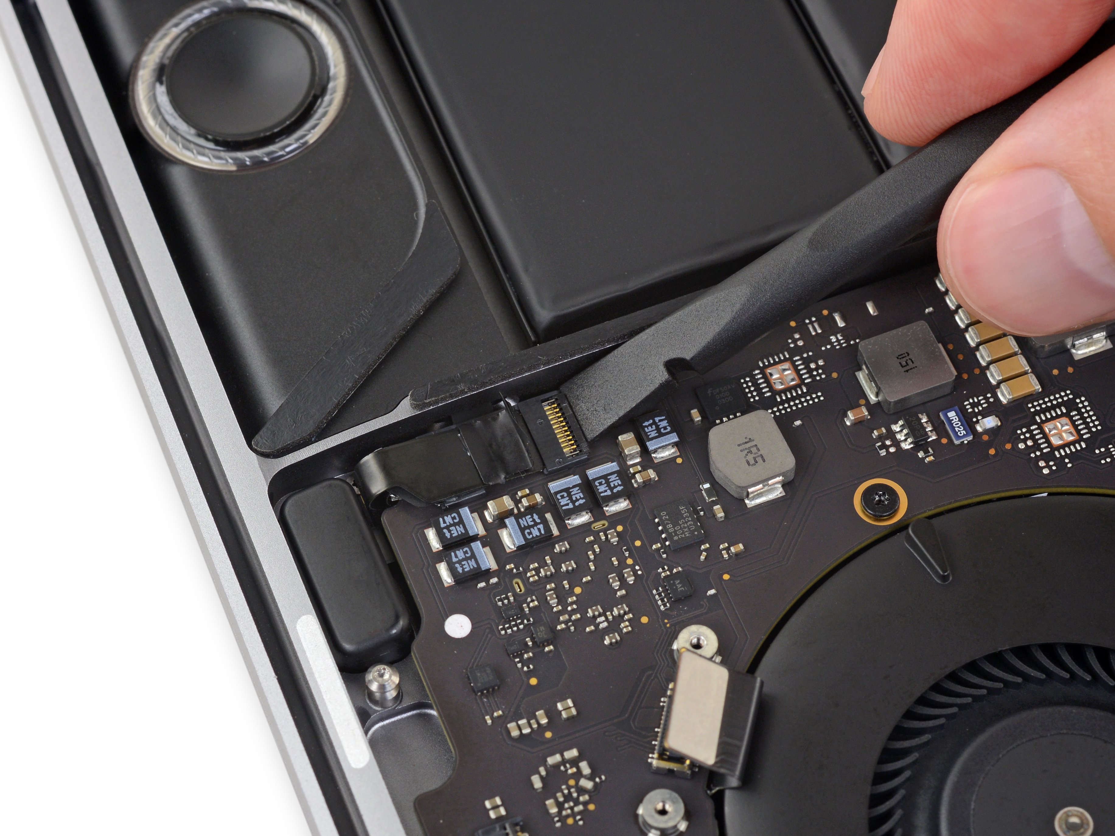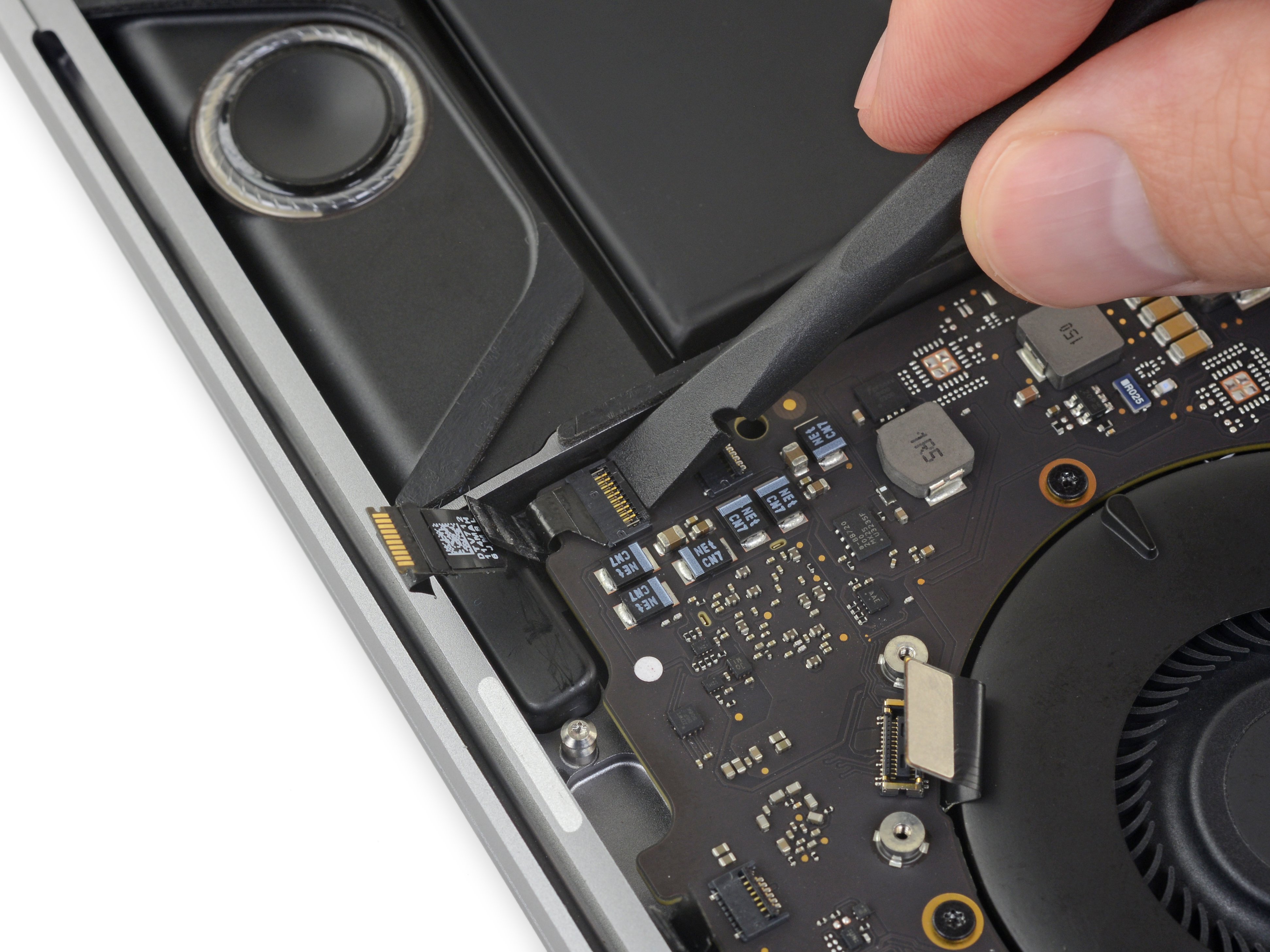 - Lift the connector high enough so that it stays separated from its socket. If it accidentally makes contact during the course of your repair, it could damage your MacBook Pro.