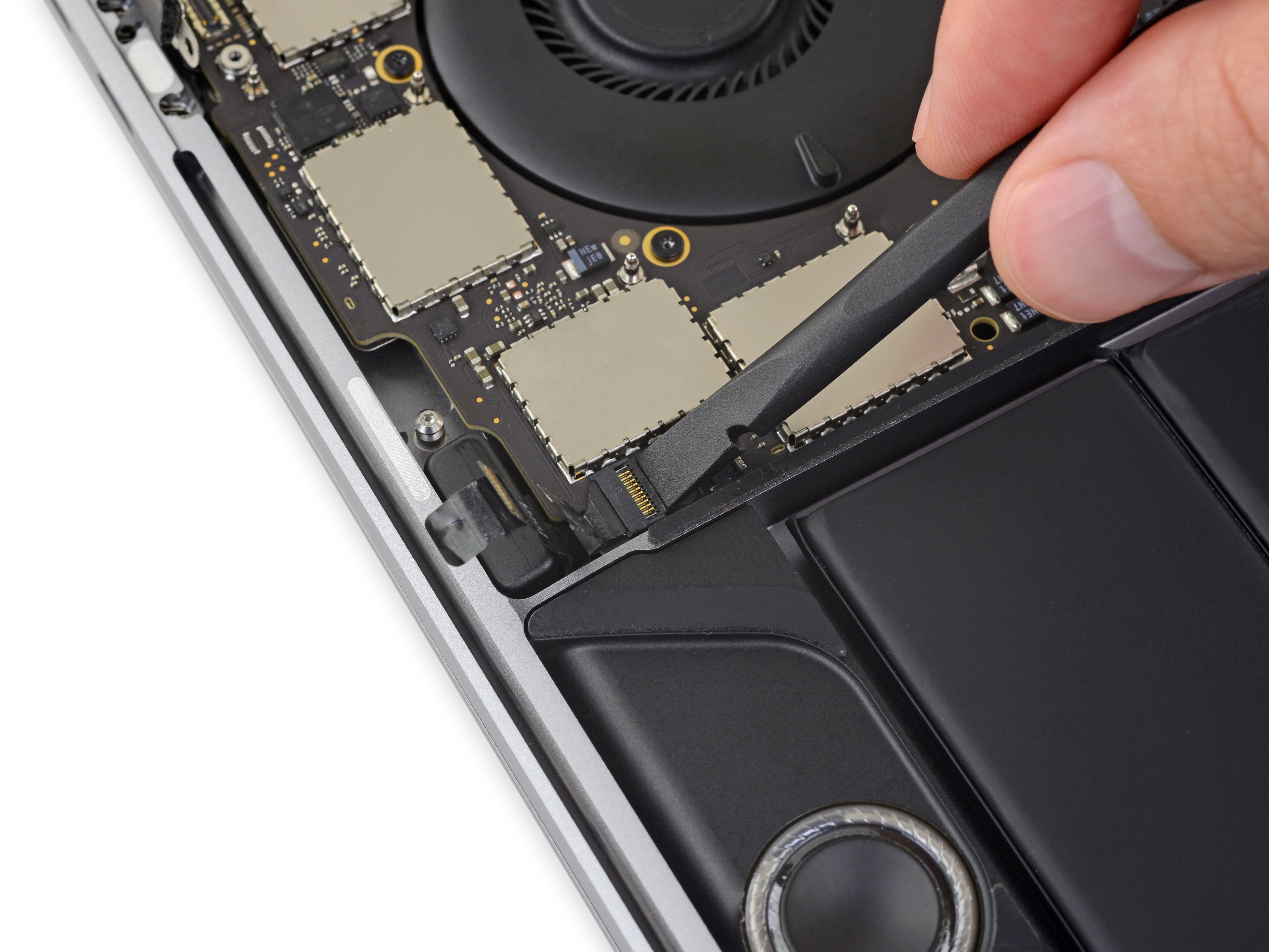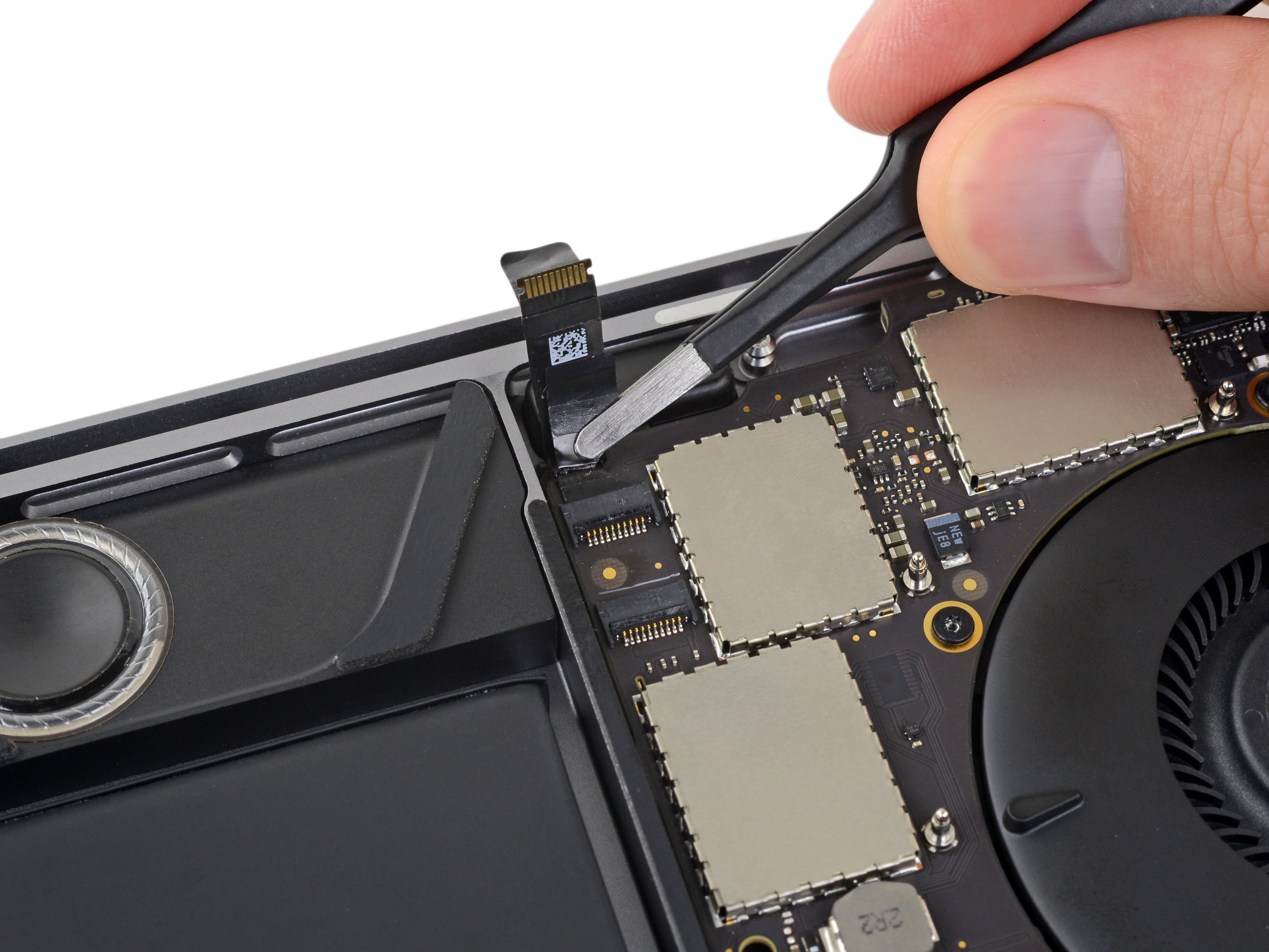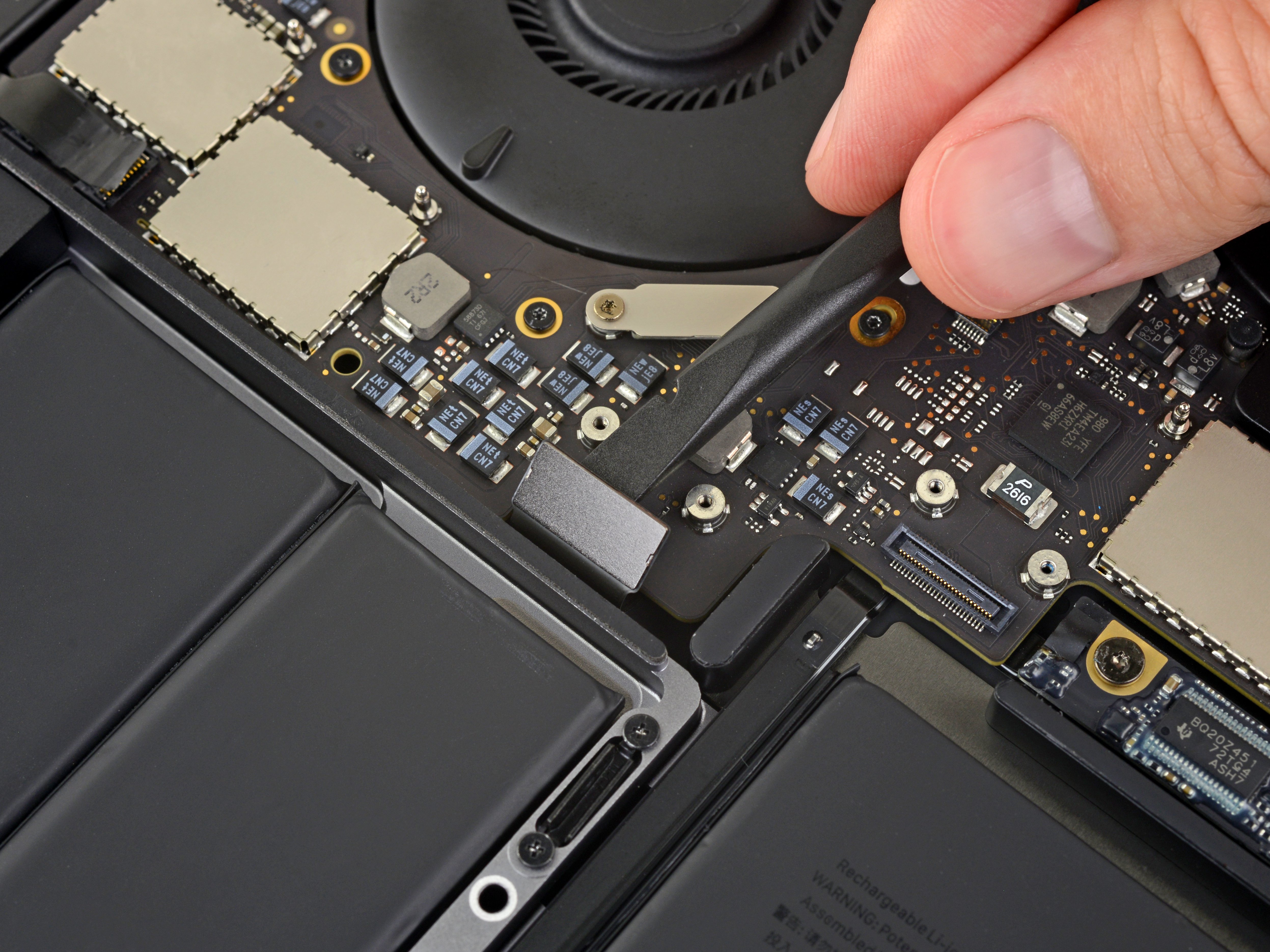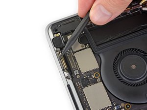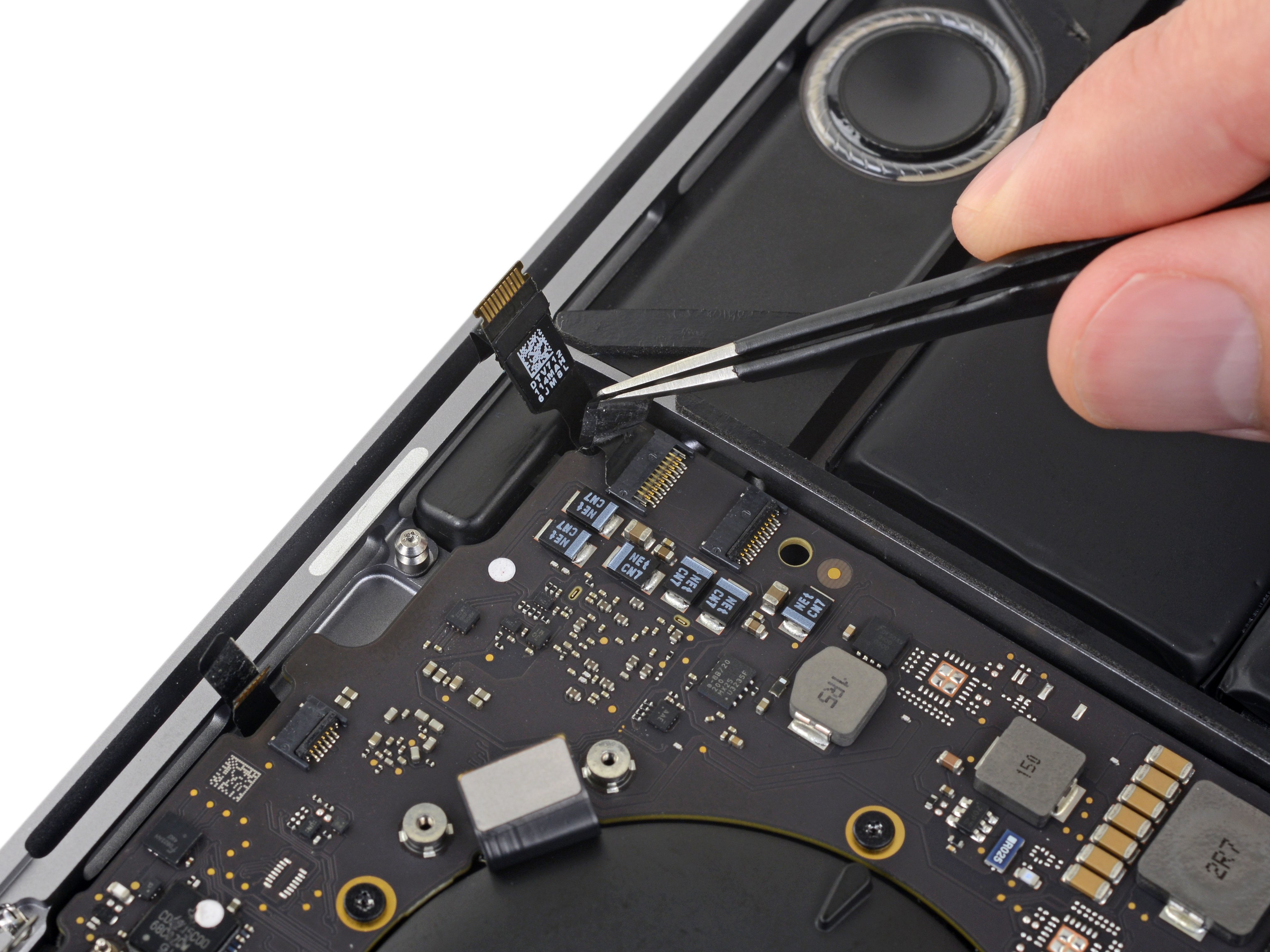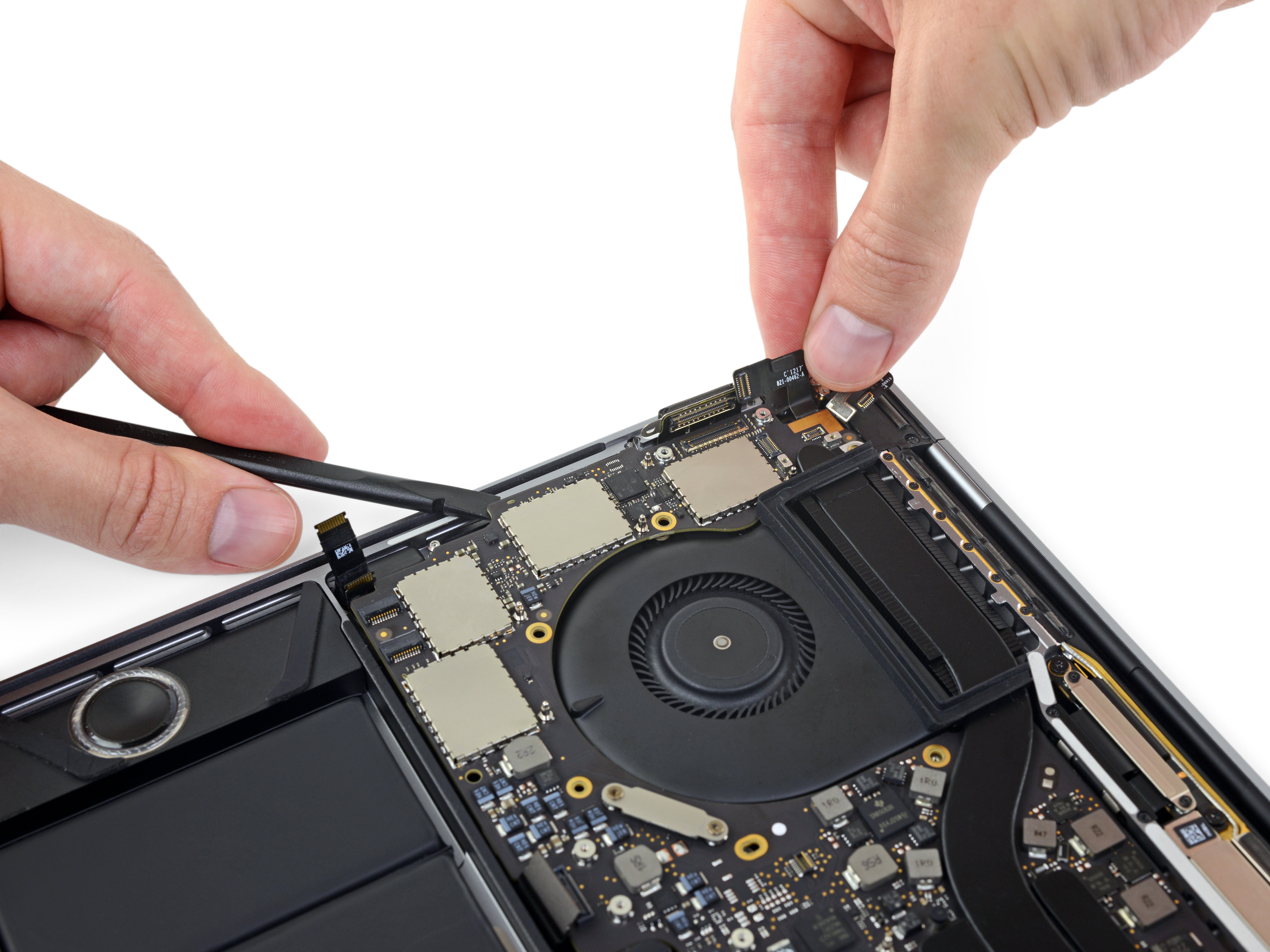 - Lift the connector high enough so that it stays separated from its socket. If it accidentally makes contact during the course of your repair, it could damage your MacBook Pro.