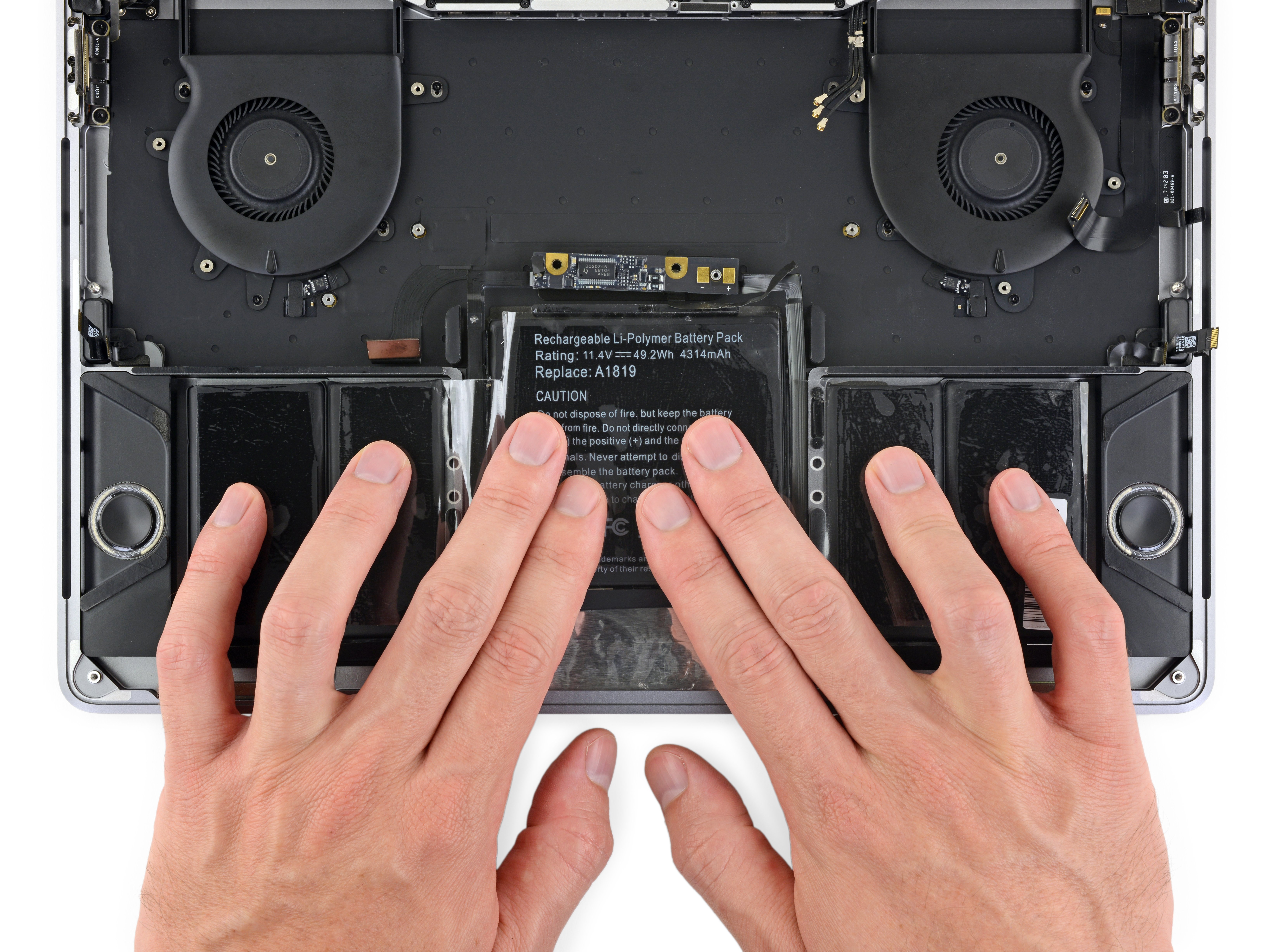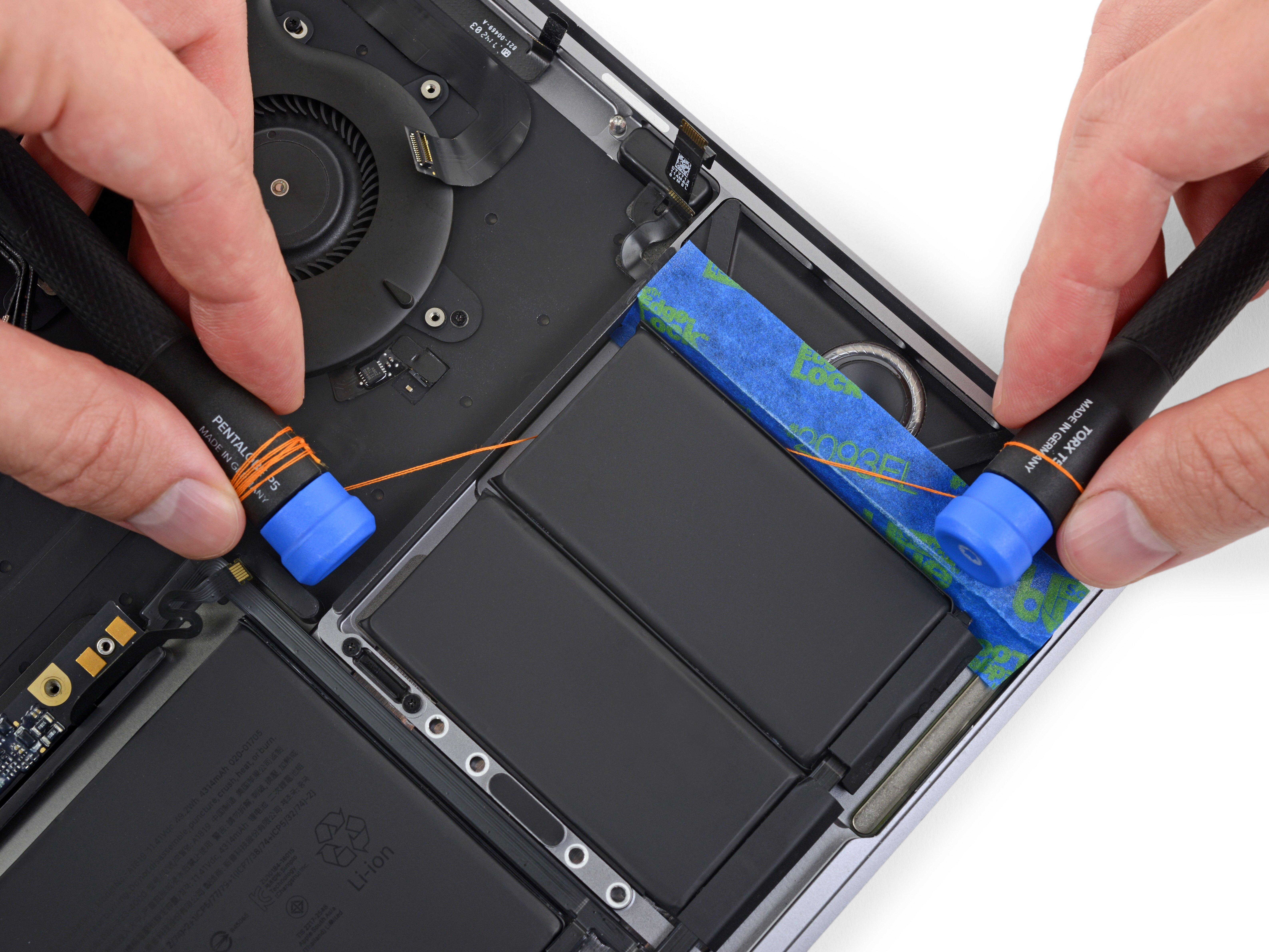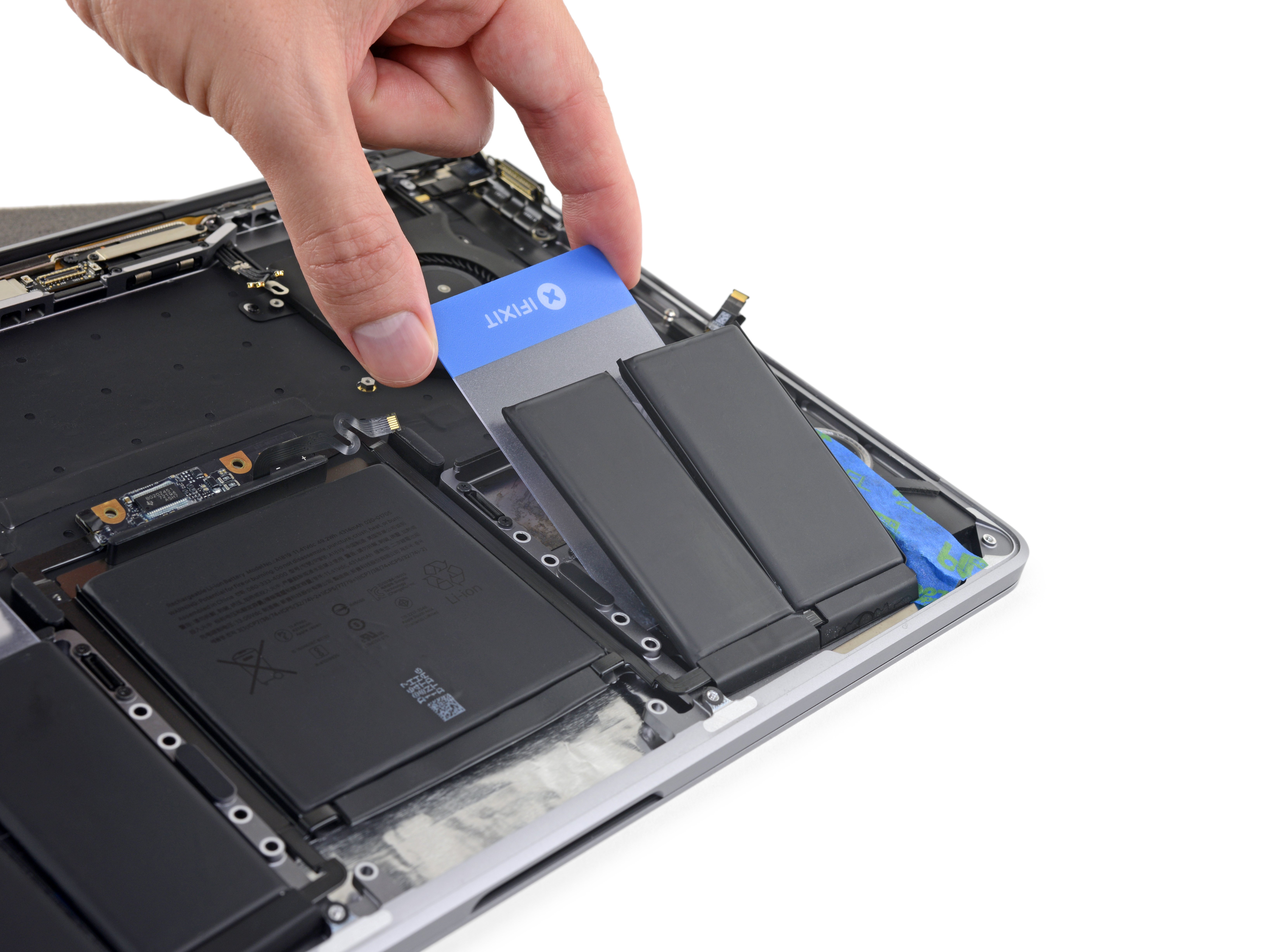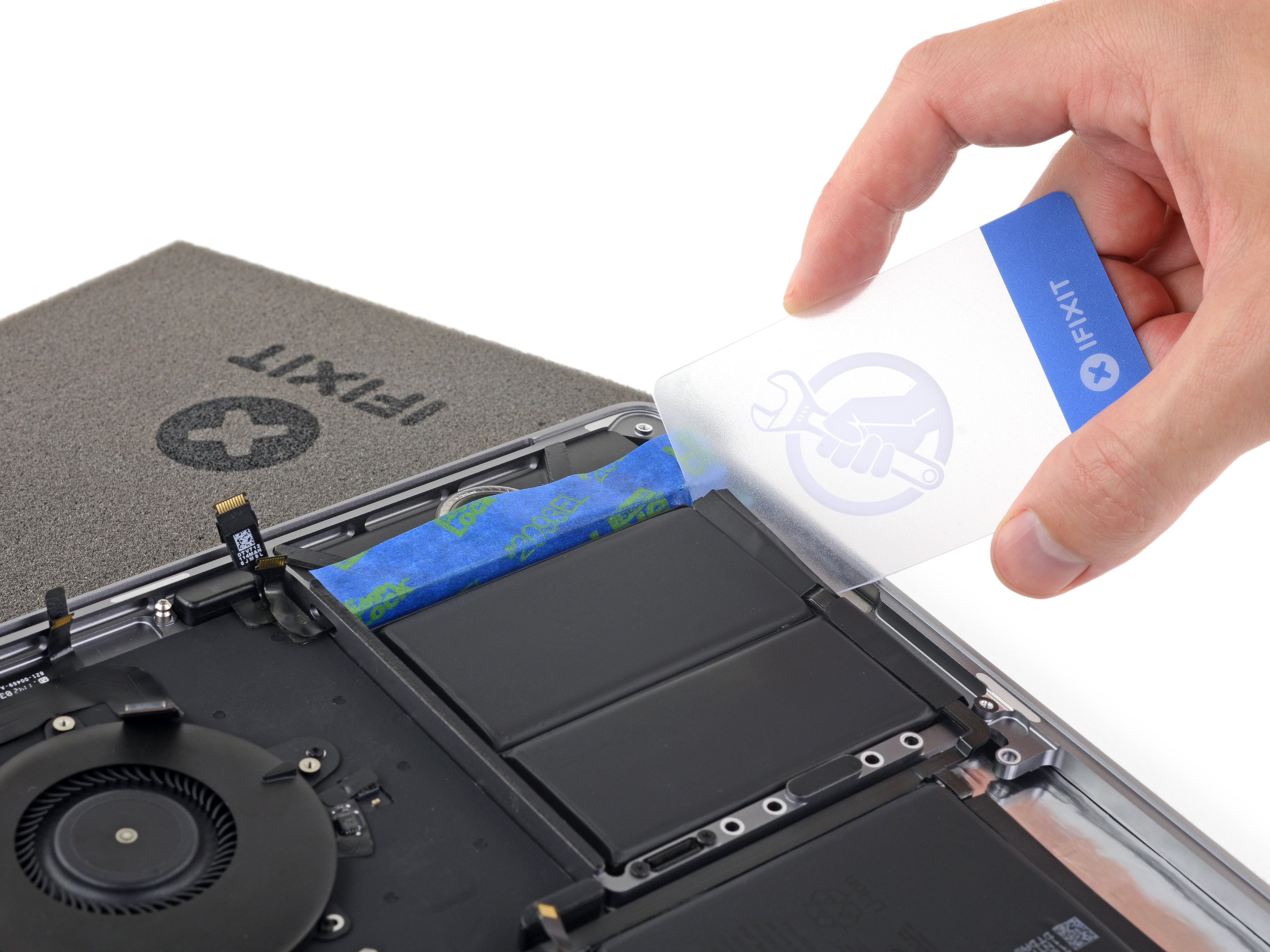 - Before installing a new battery, remove all remaining adhesive from the MacBook Pro's case.