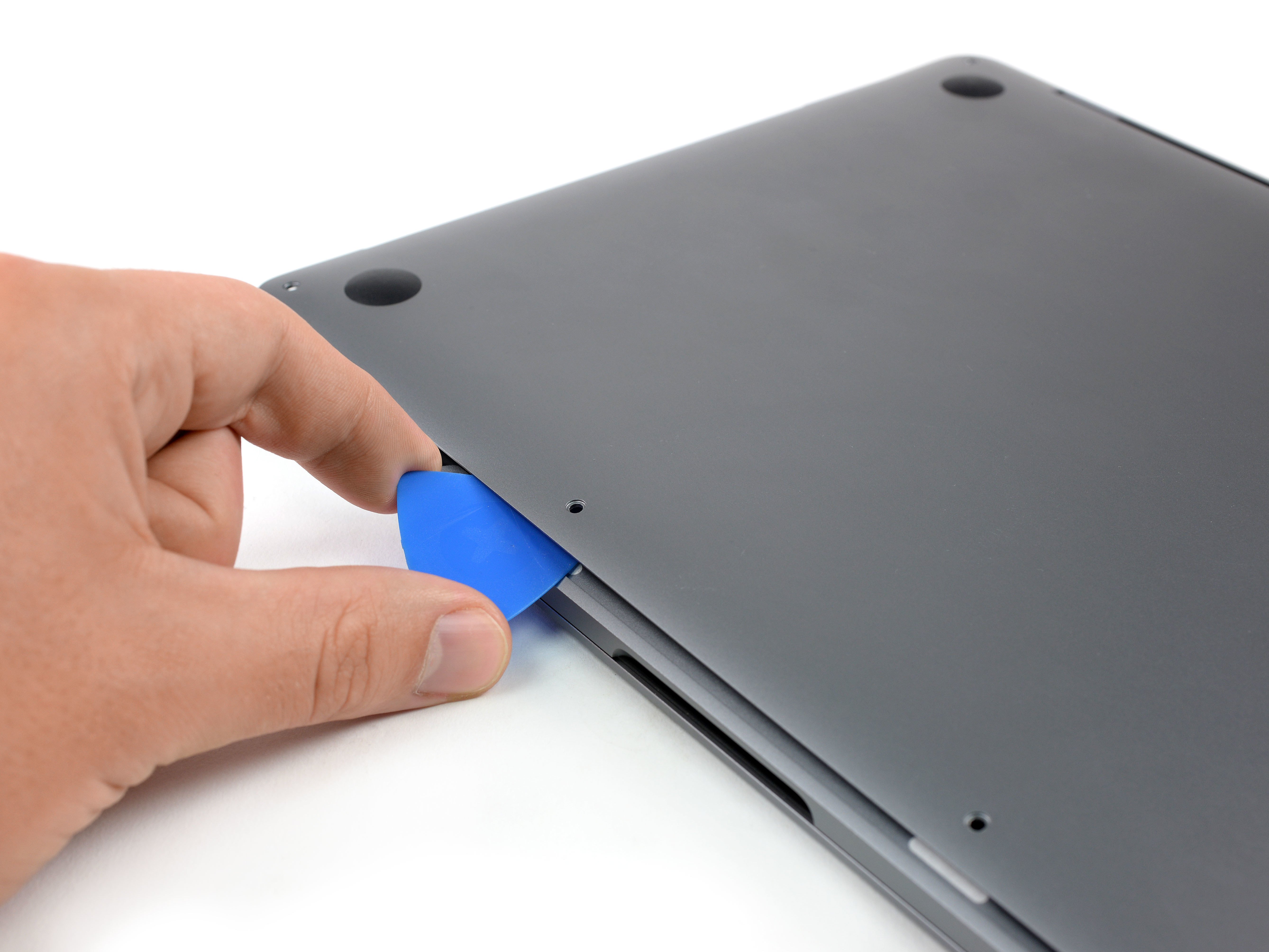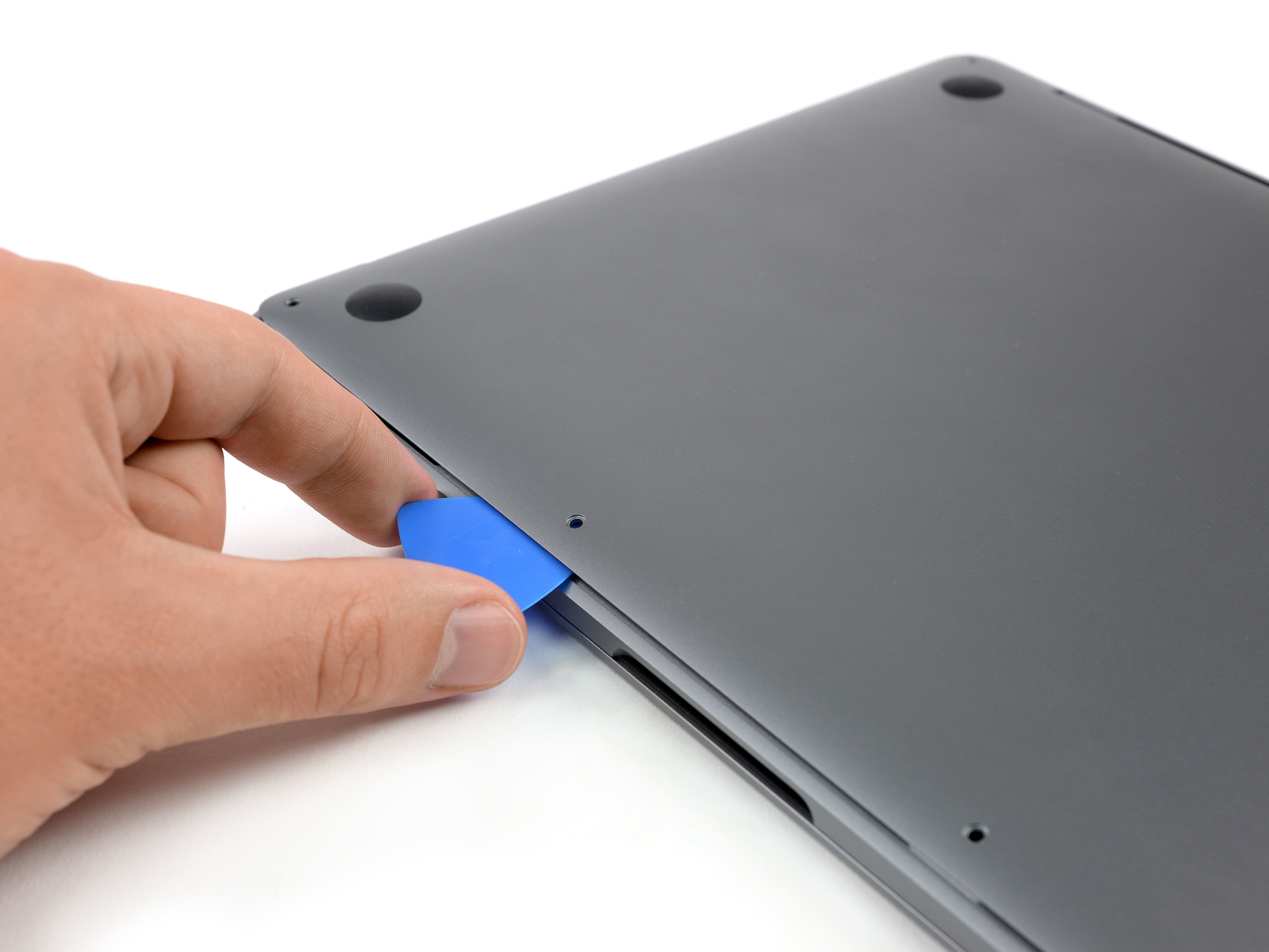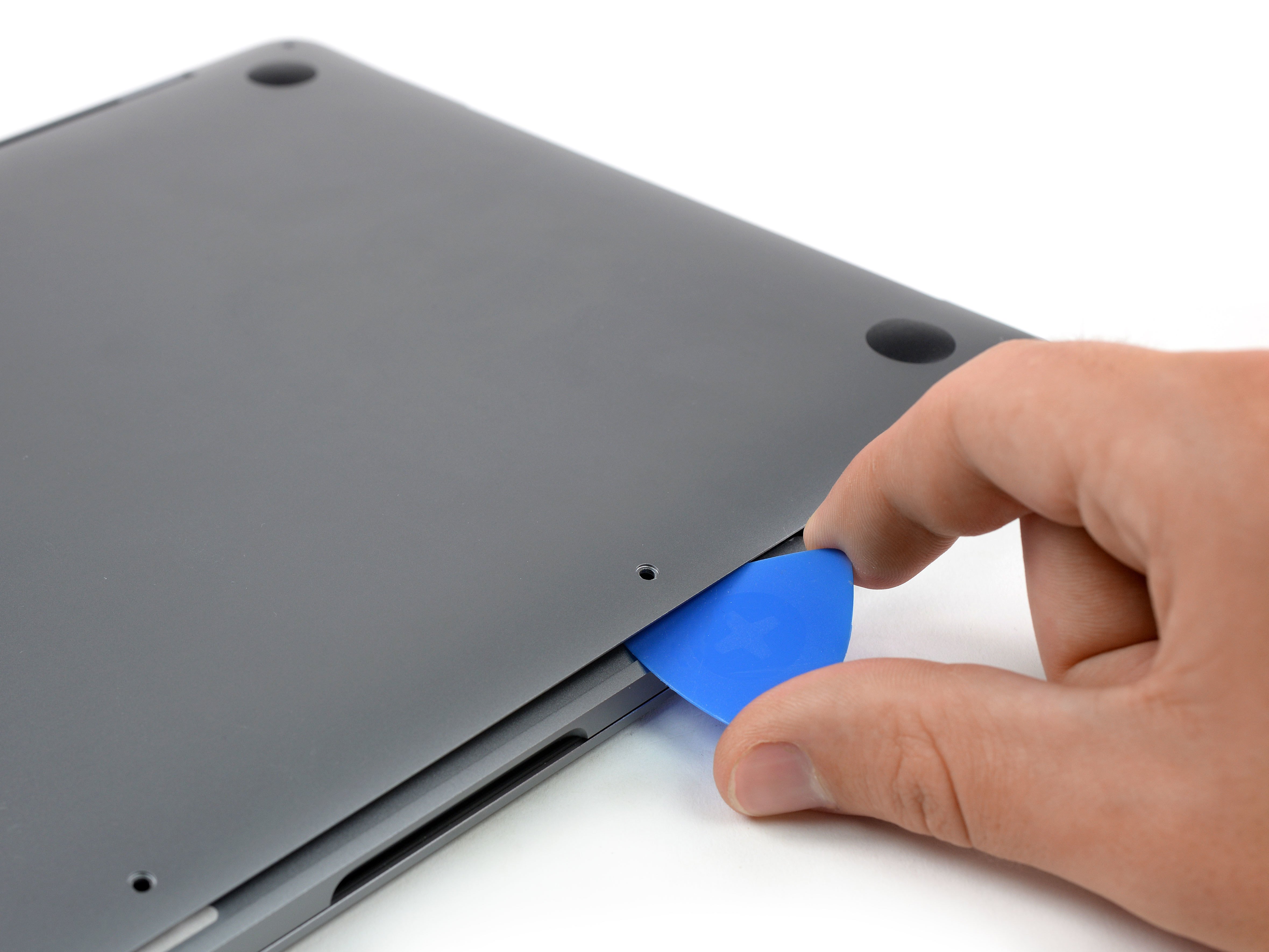 - Insert one corner of an opening pick into the space between the lower case and the chassis.