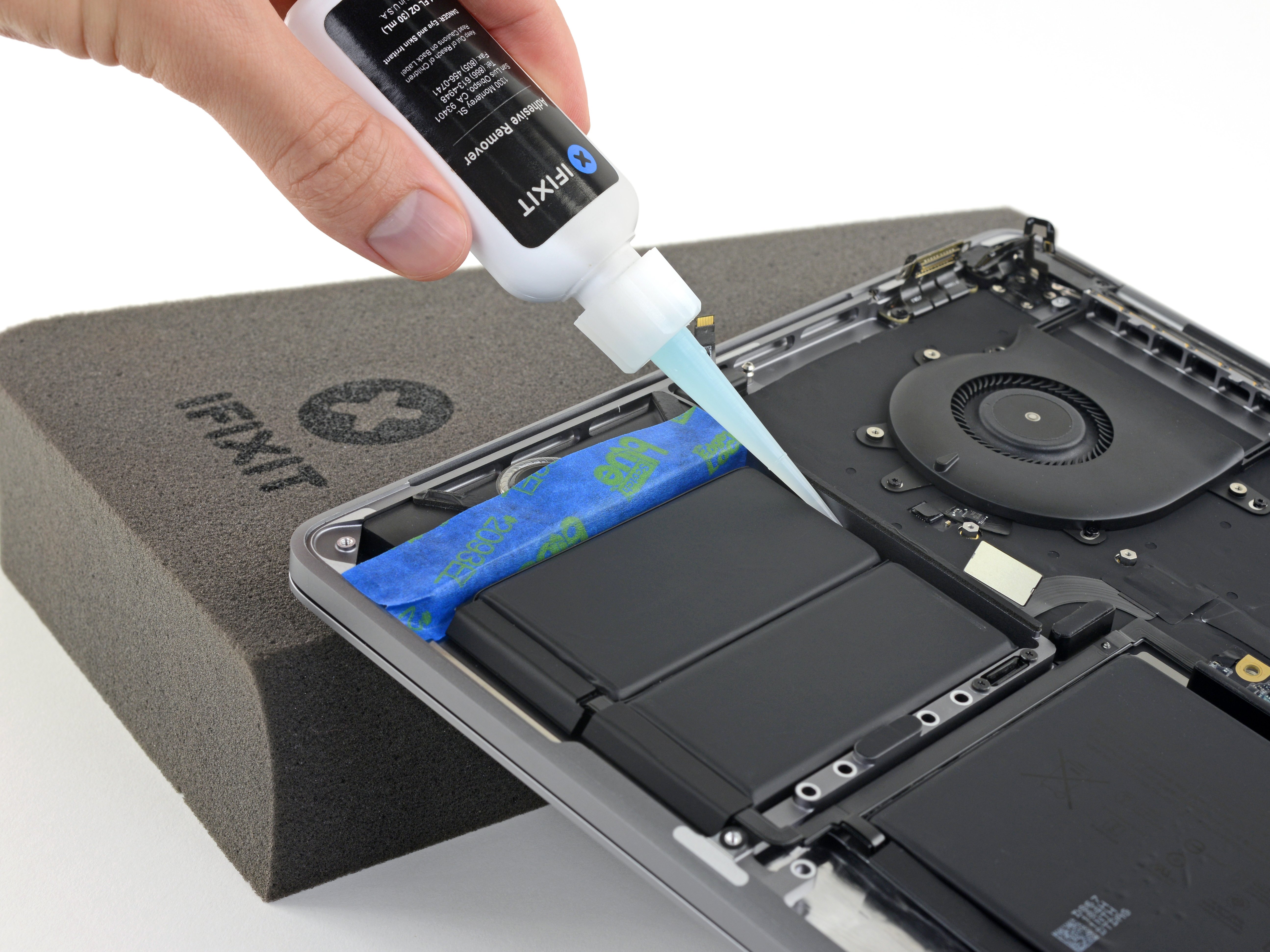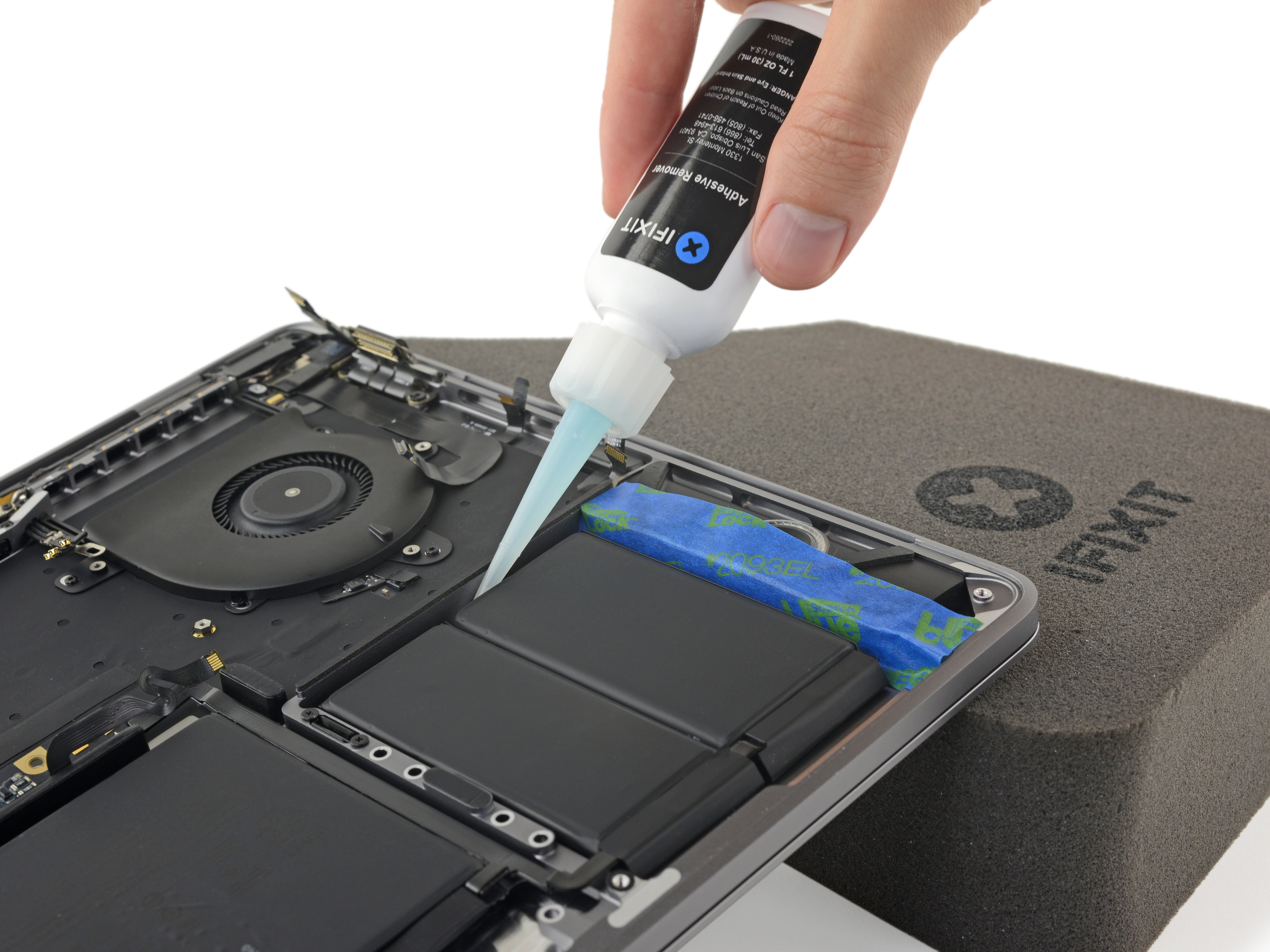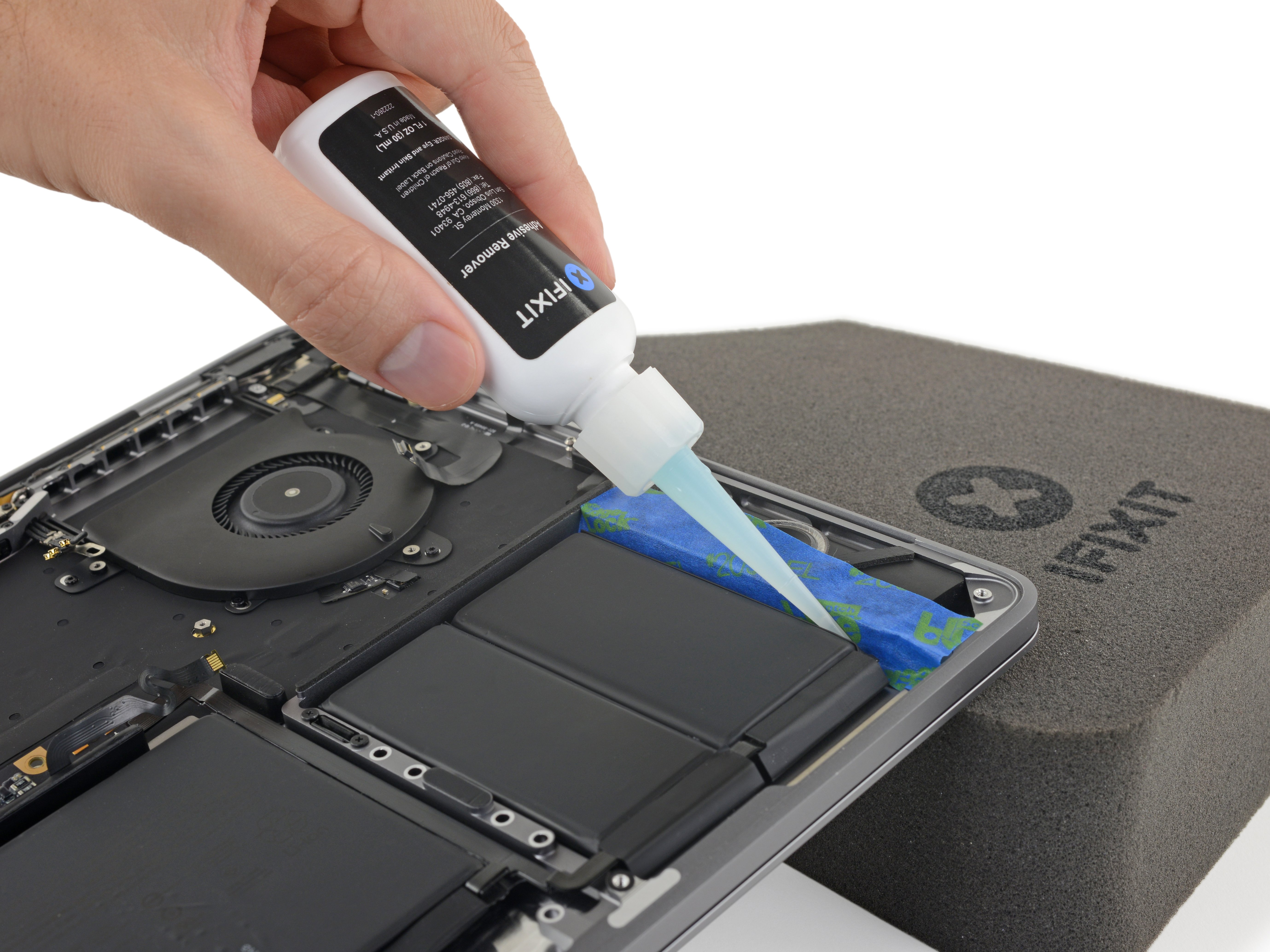 Follow these instructions to replace the glued-in battery in your MacBook Pro using an iFixit kit with adhesive remover. The adhesive remover helps weaken the glue securing the old battery, making it easier to remove.