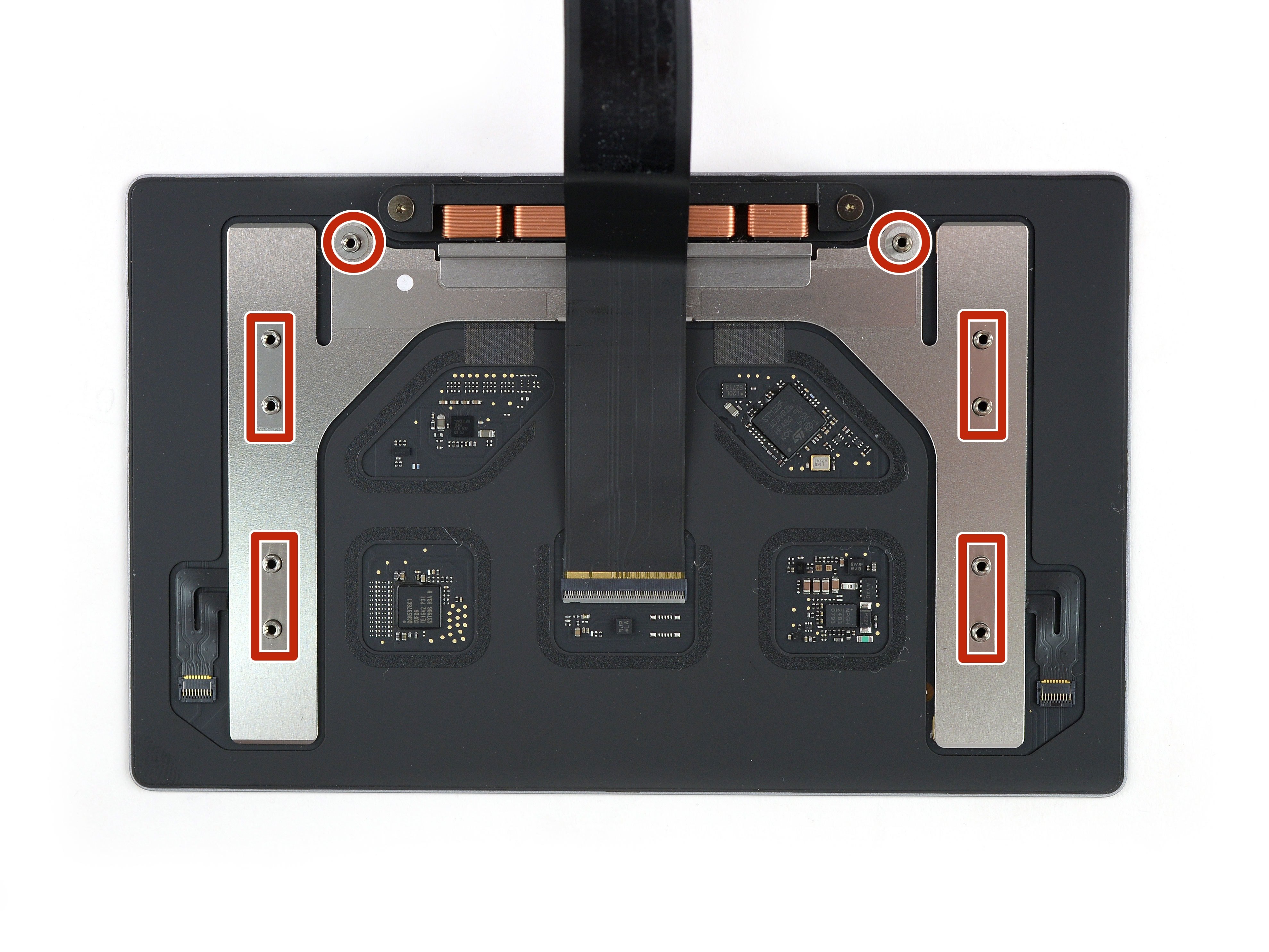 - Use a T5 Torx driver to remove the ten screws securing the trackpad assembly: