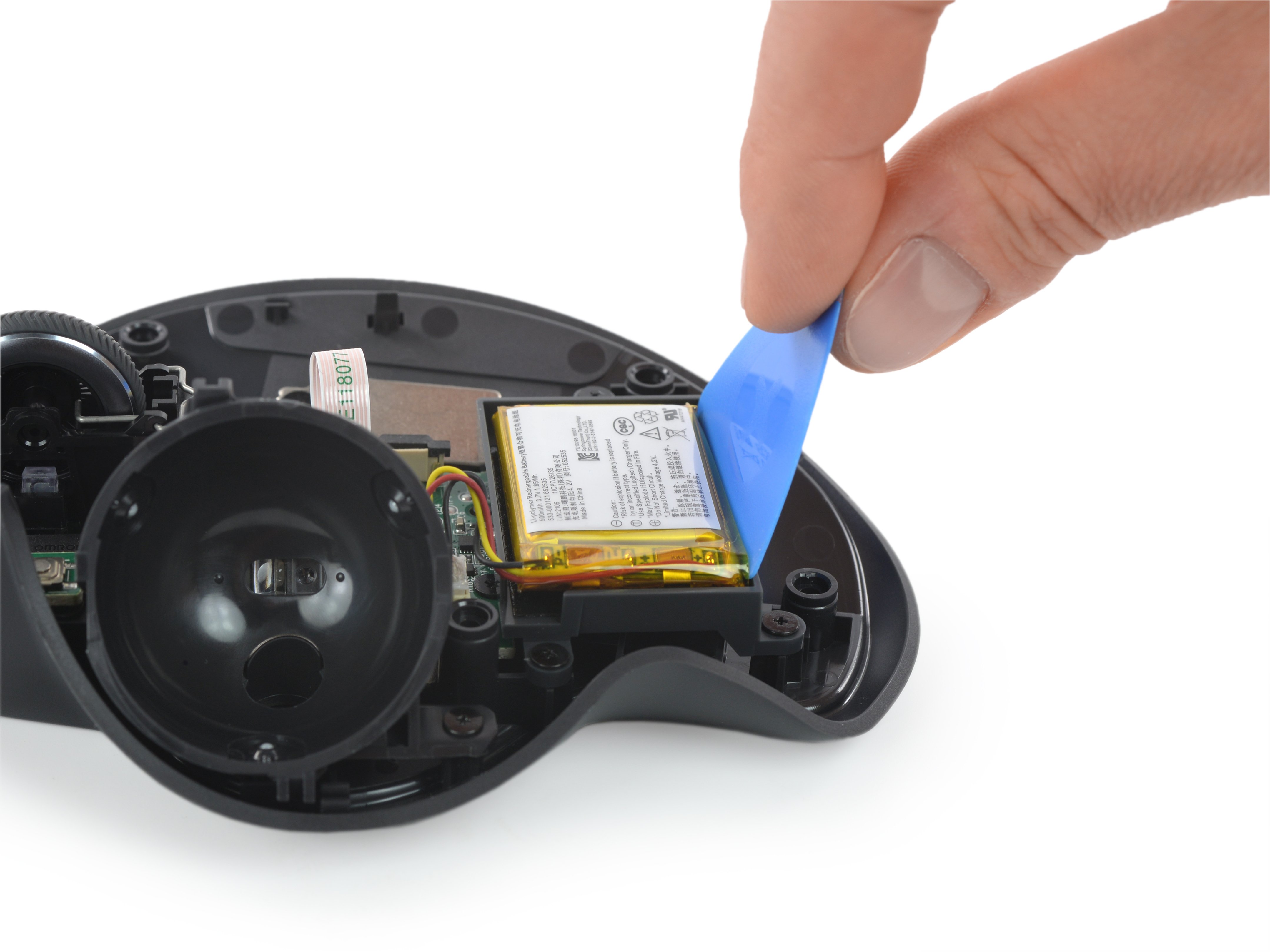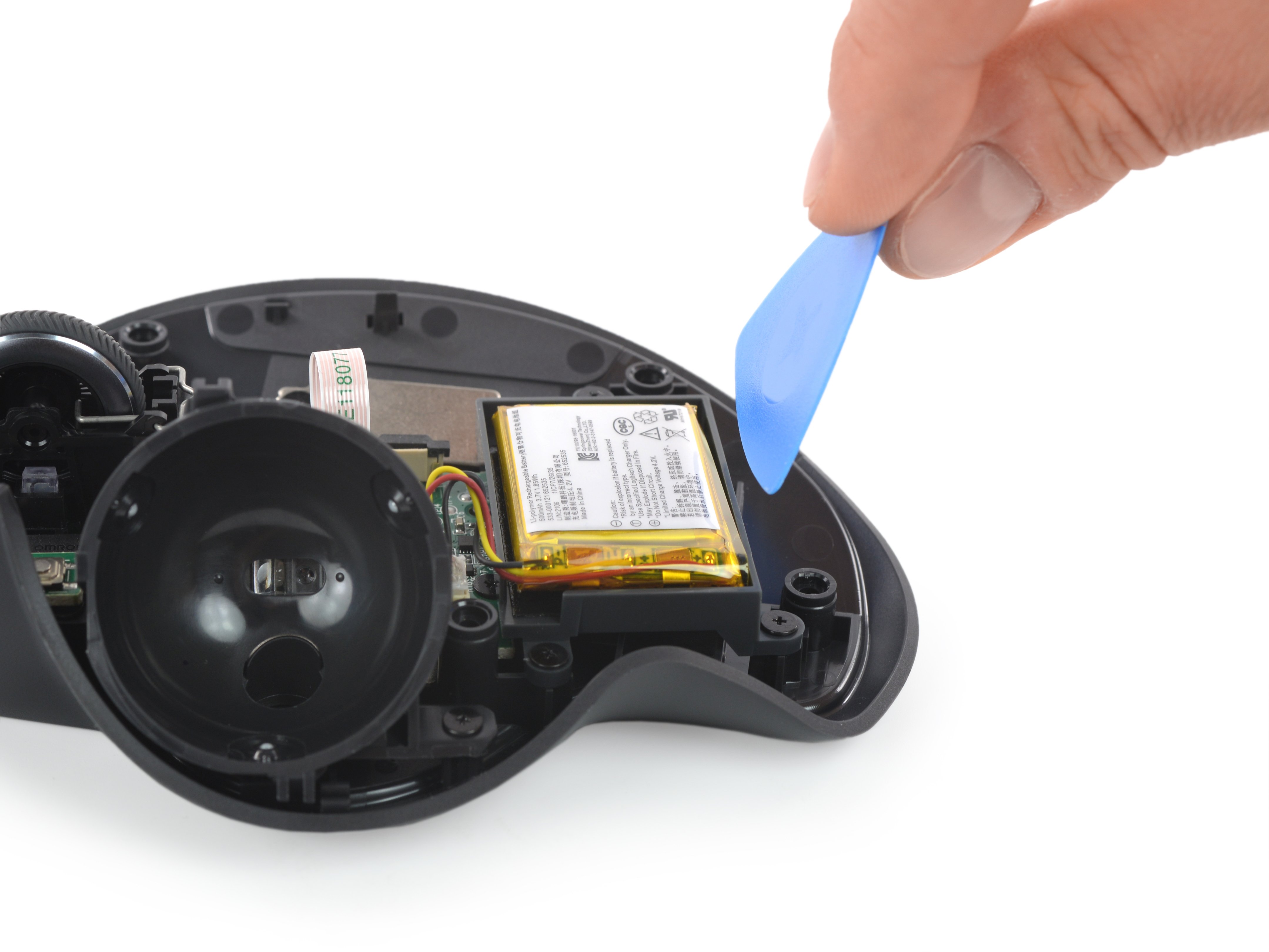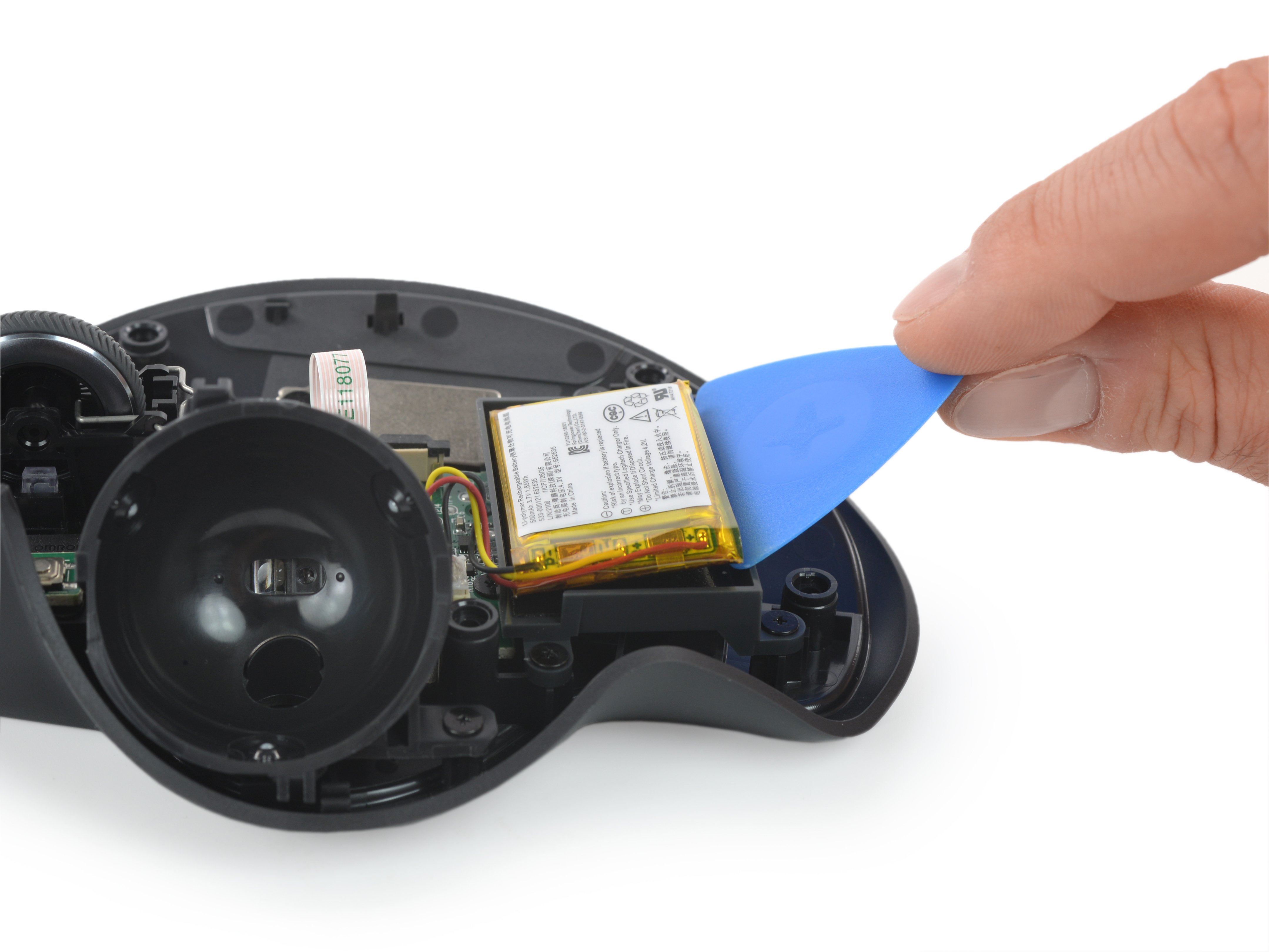 - Slide the opening pick along the seam until it's about half way to the rear of the mouse.
